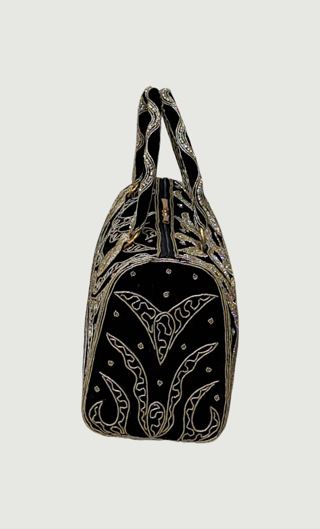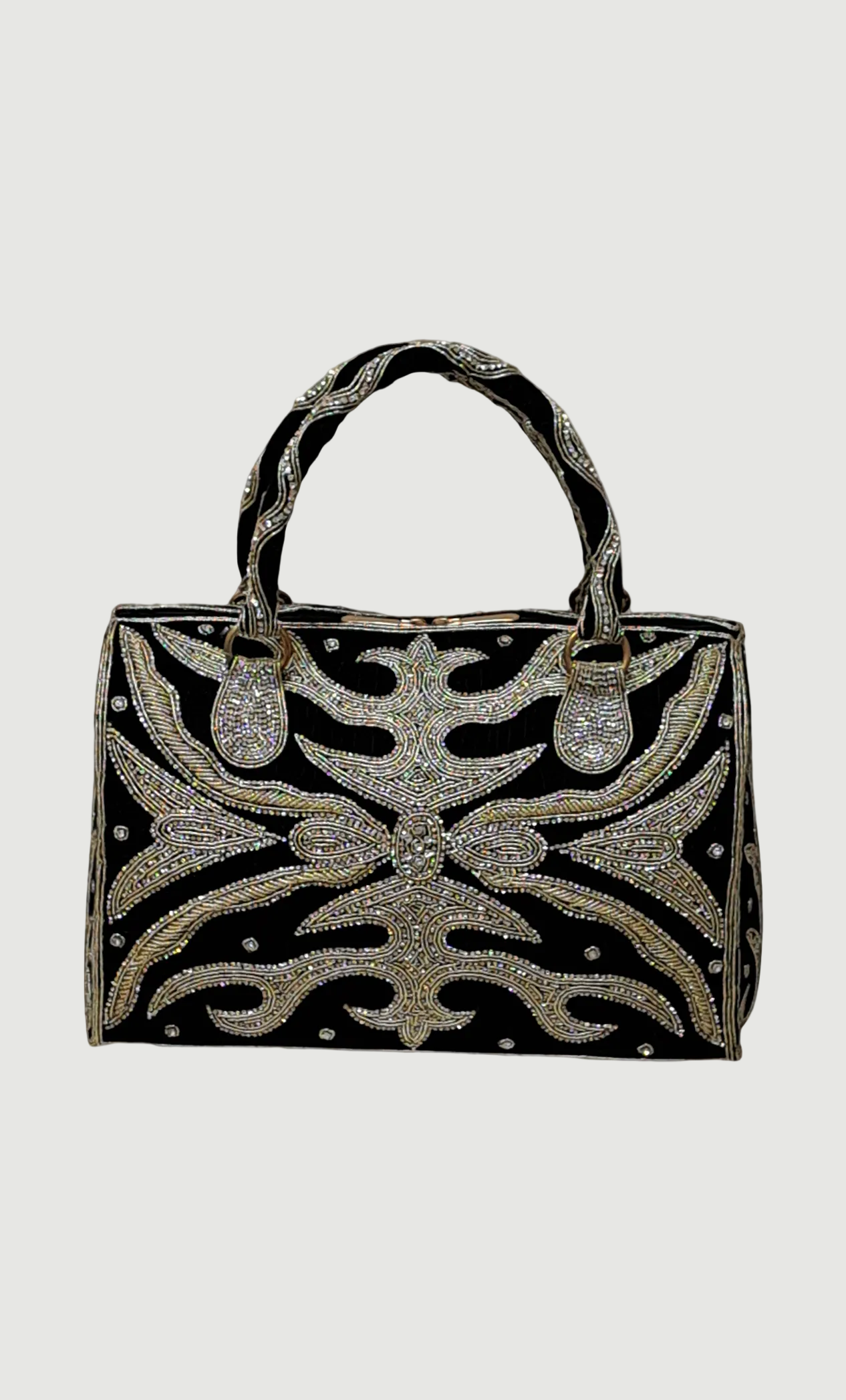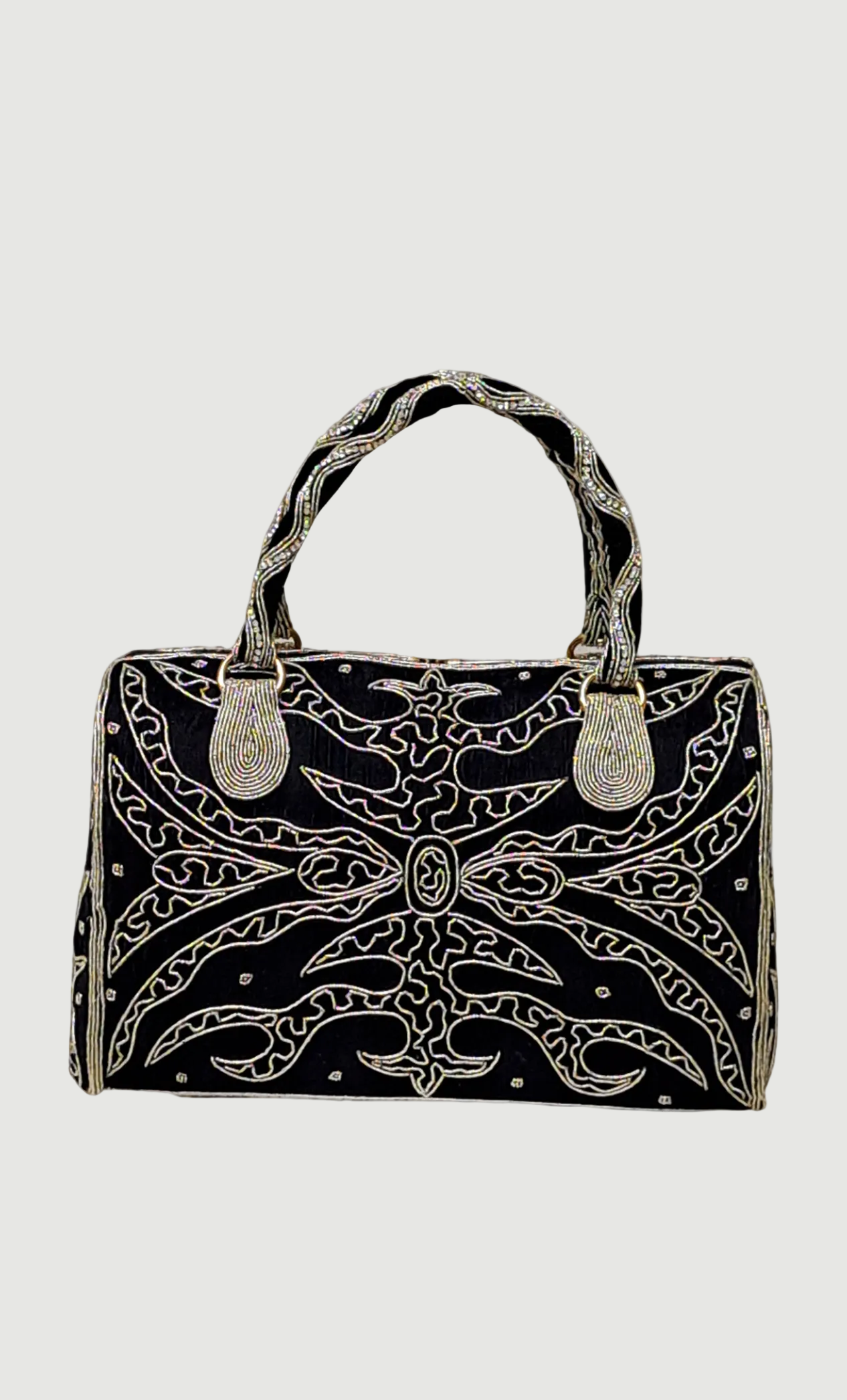Black Stonework Embroidered Handbag