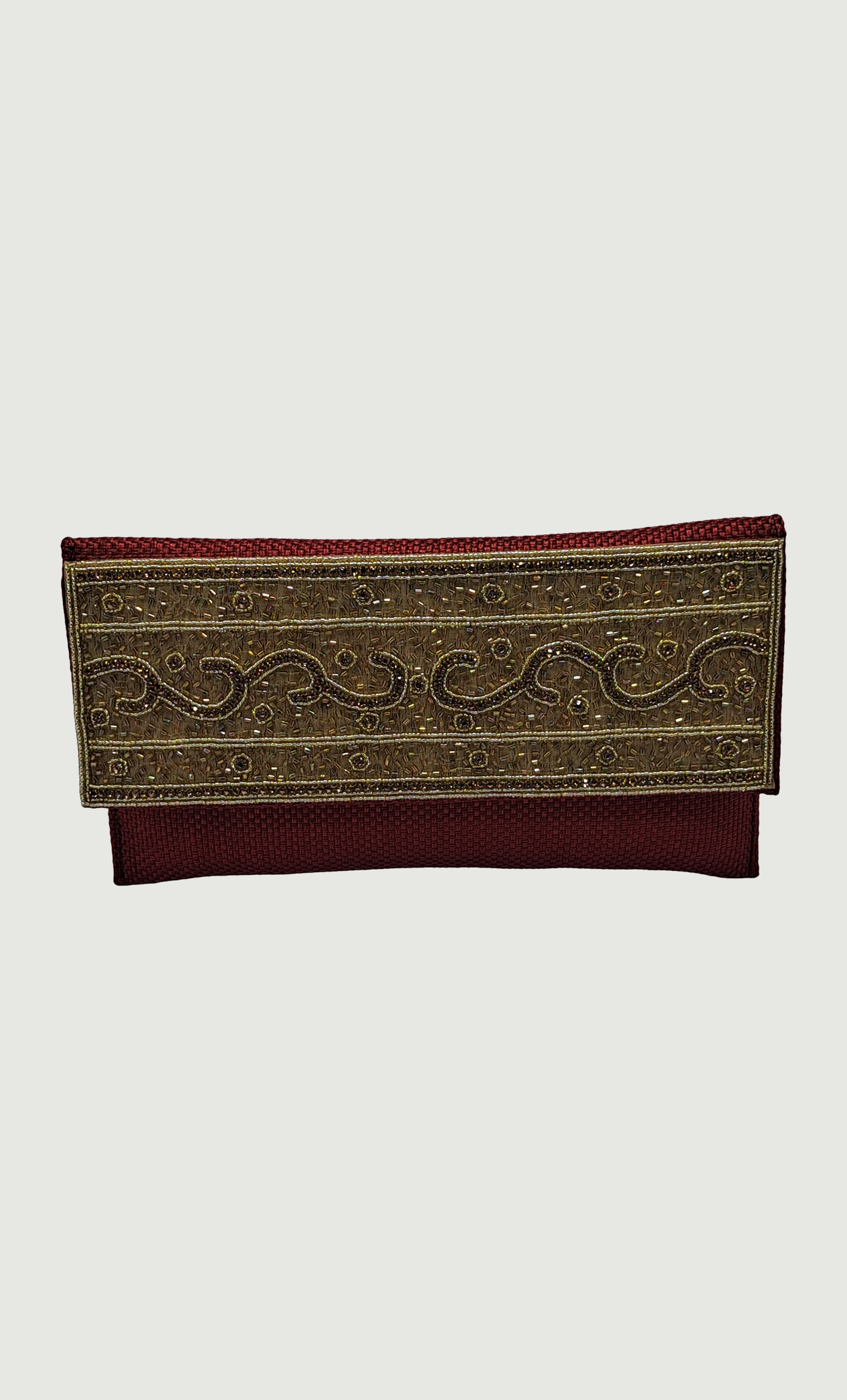 Deep Red Embroidered Clutch