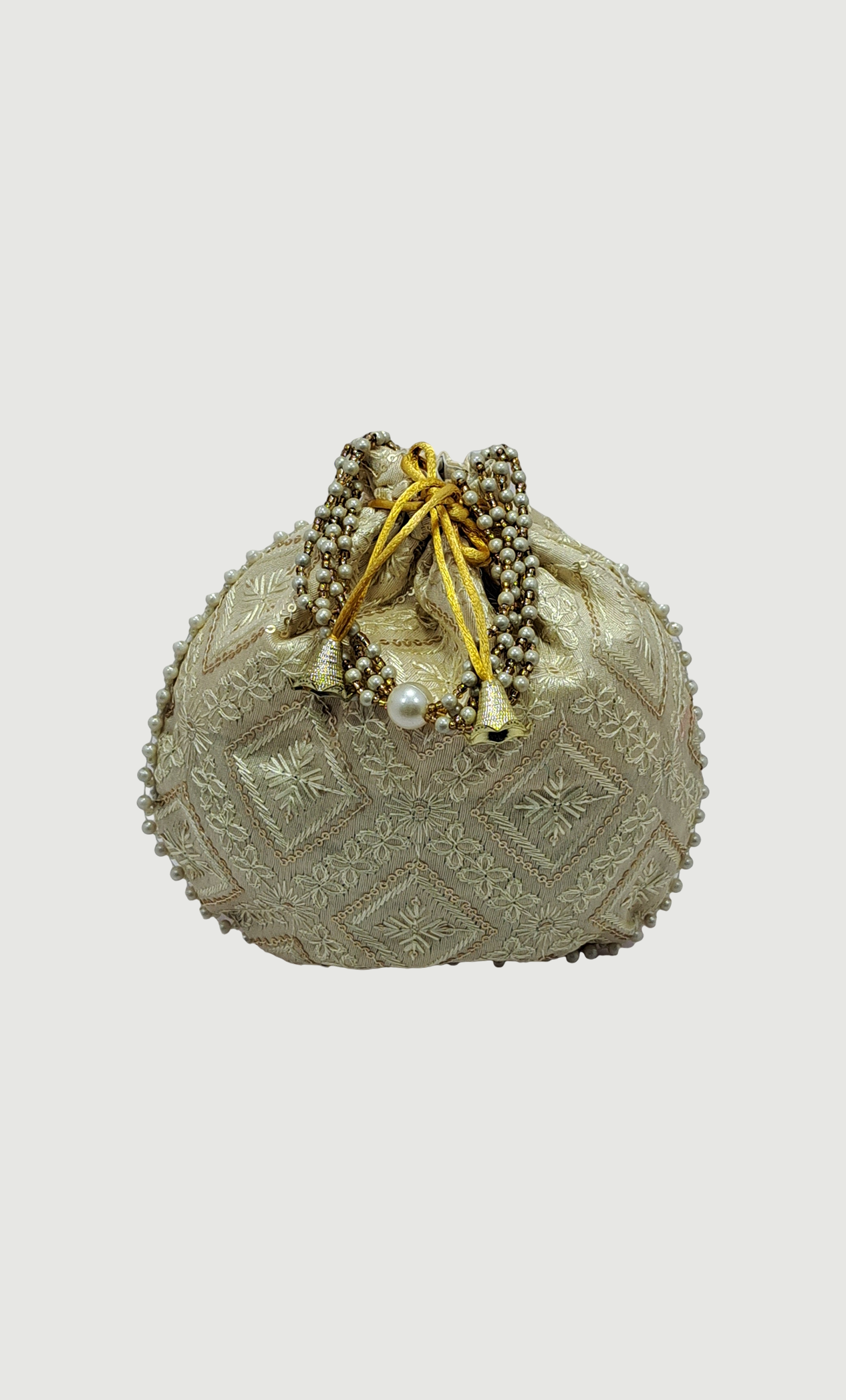 Light Biscuit Embroidered Pouch Bag