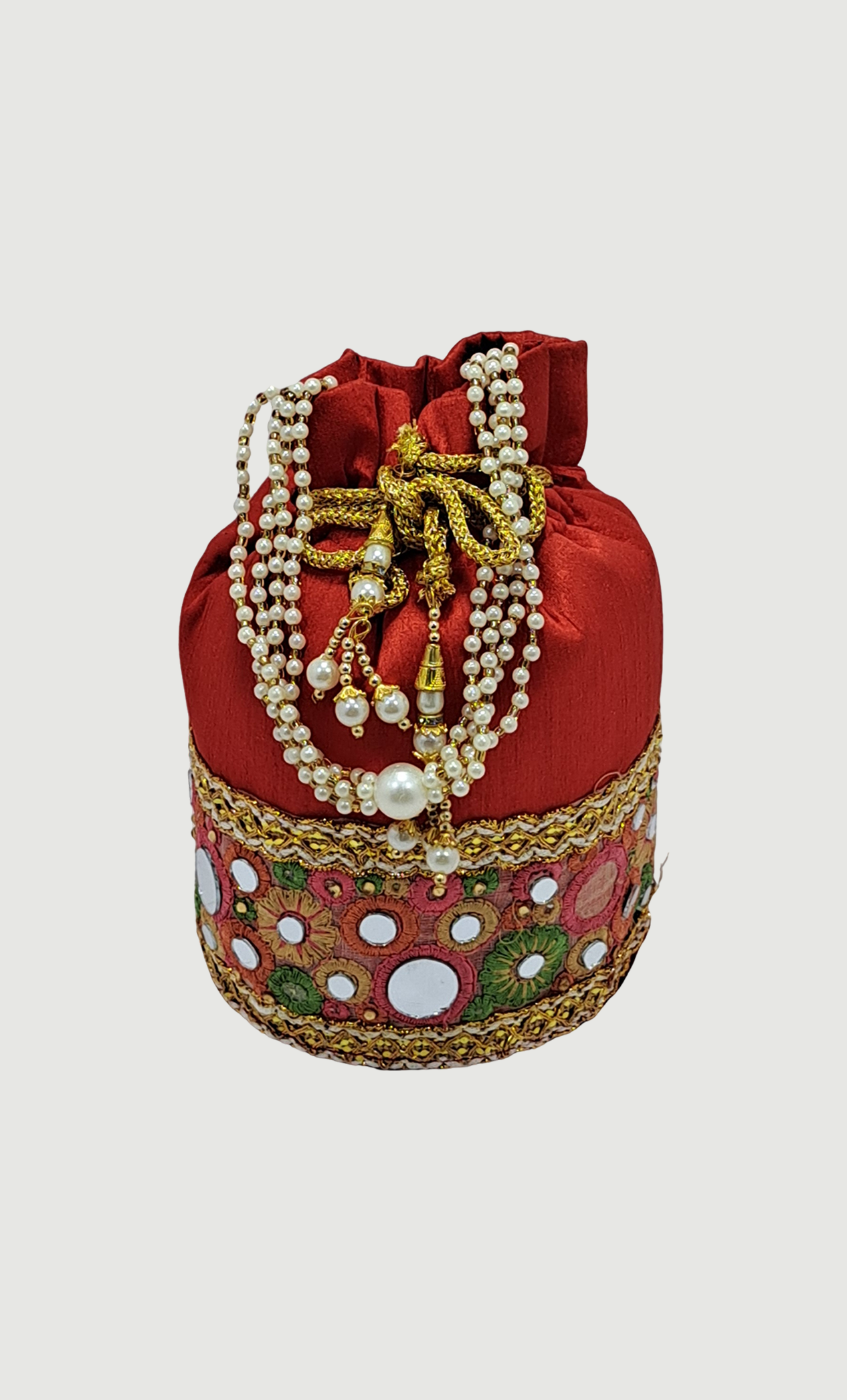 Red Embroidered Pouch Bag