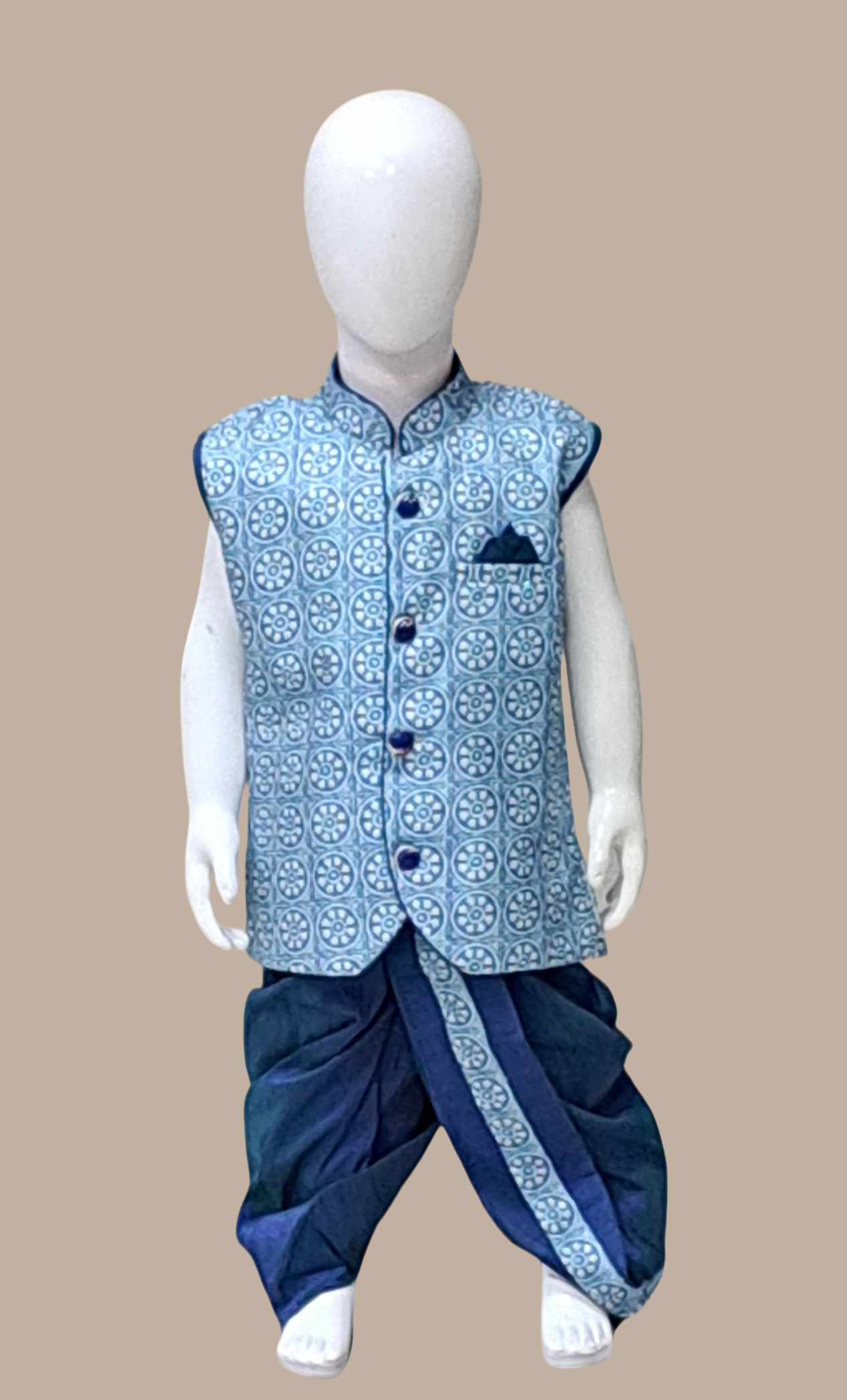 Toddler Boys Blue Embroidered Dhoti Set