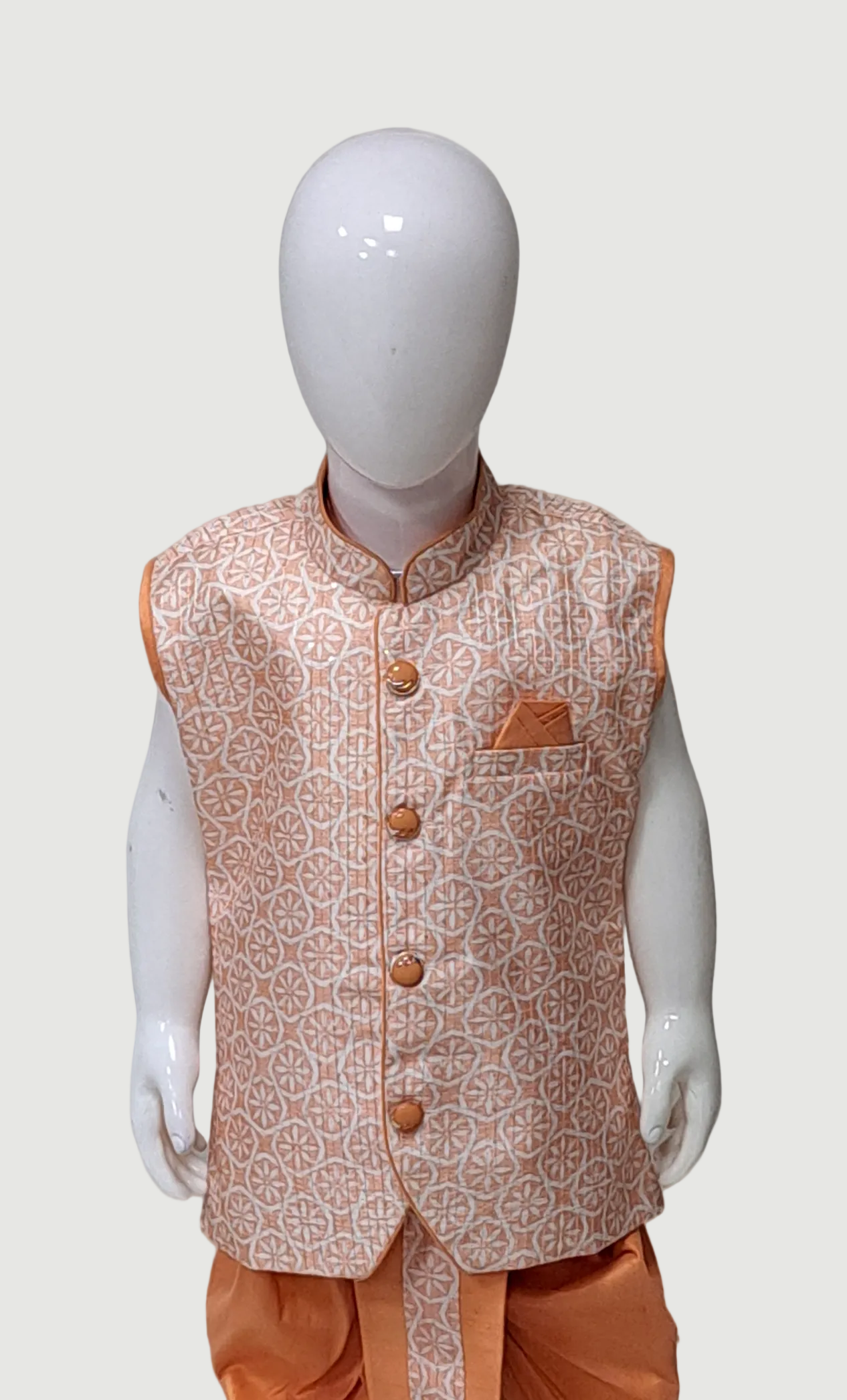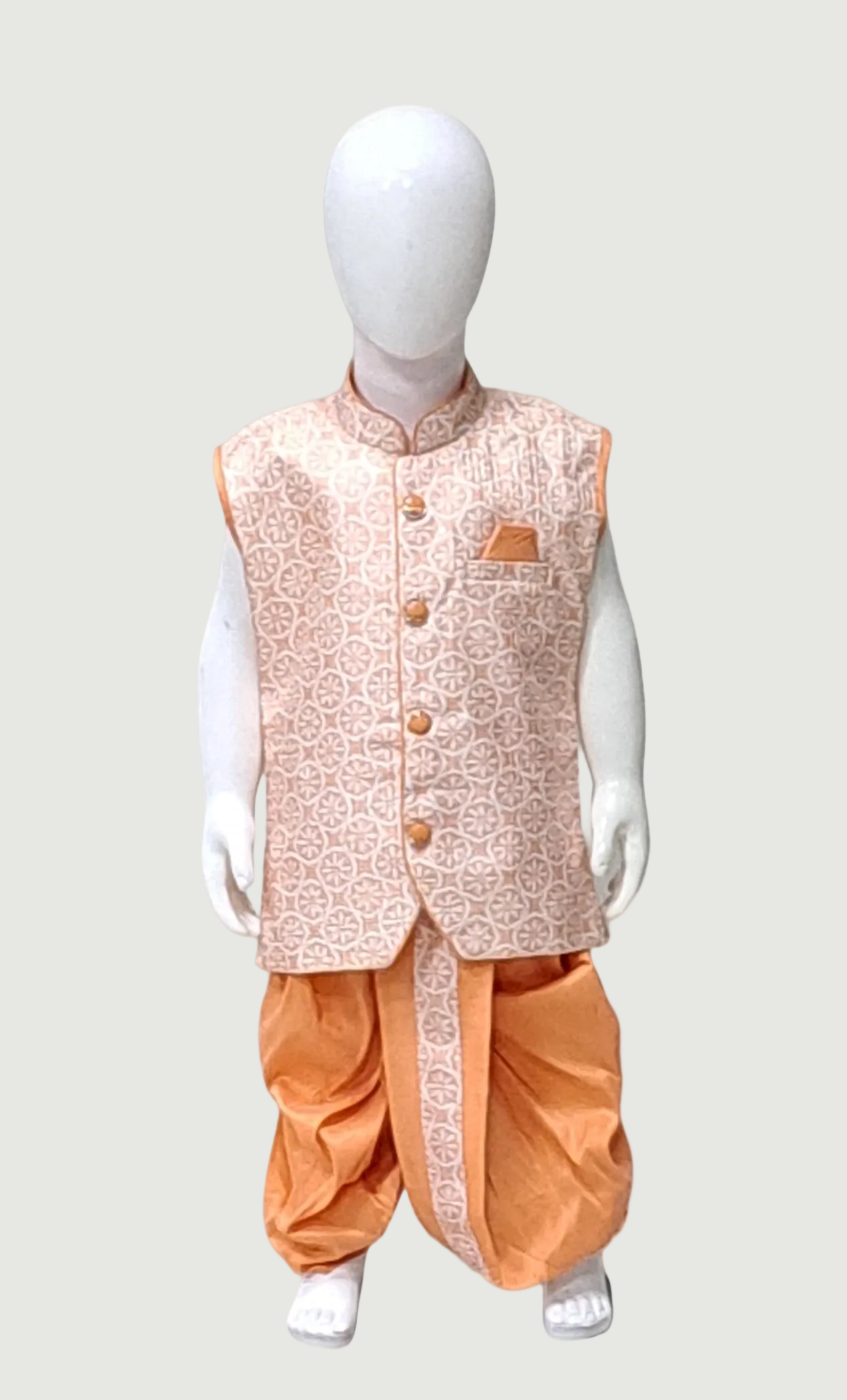 Toddler Boys Peach Embroidered Dhoti Set
