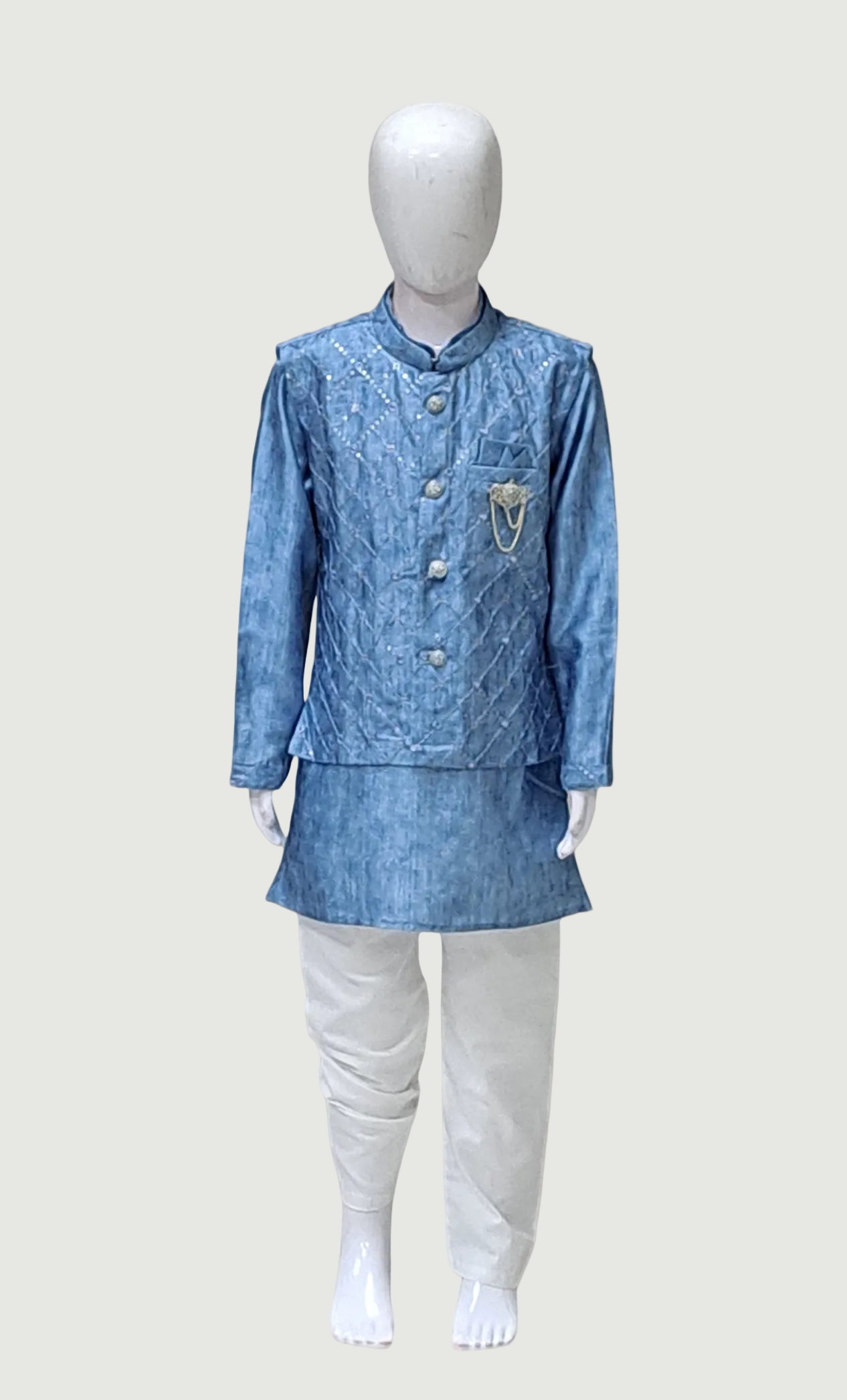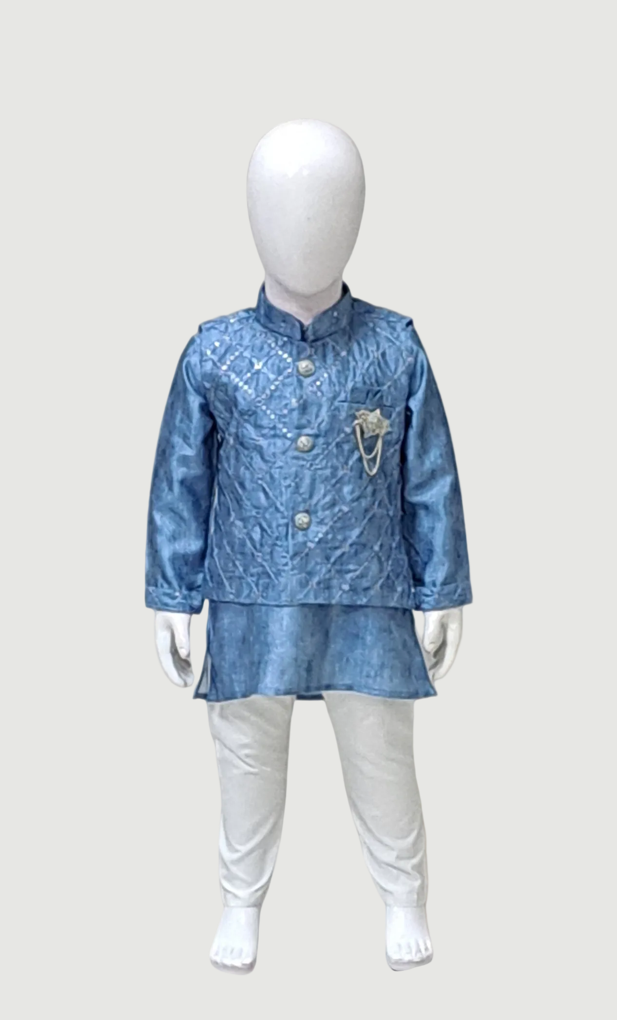 Deep Powder Blue Embroidered Kurta Set