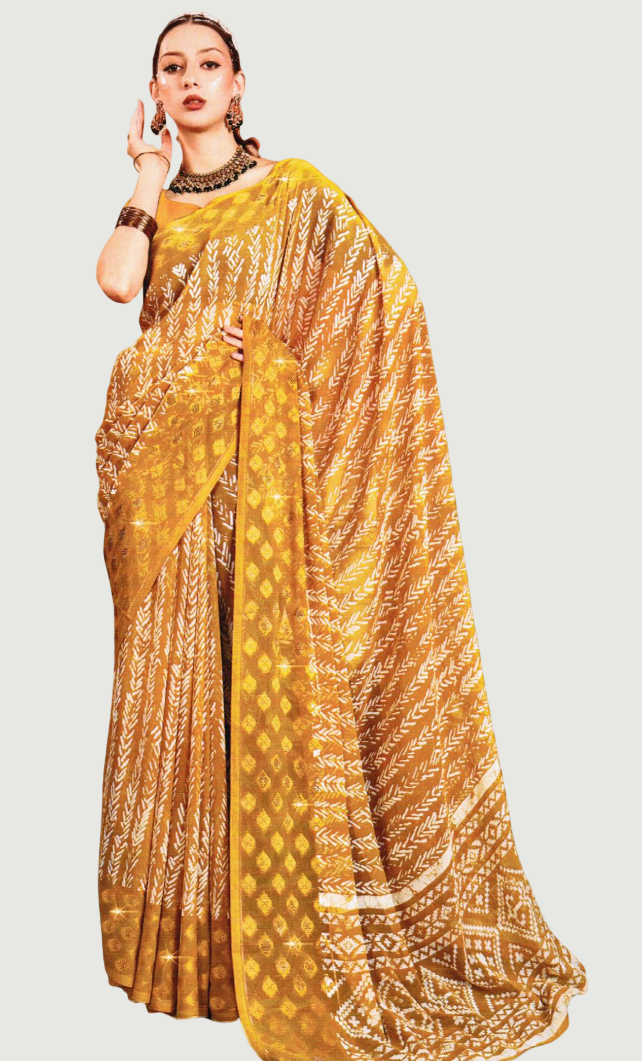 Deep Mustard Printed Sari