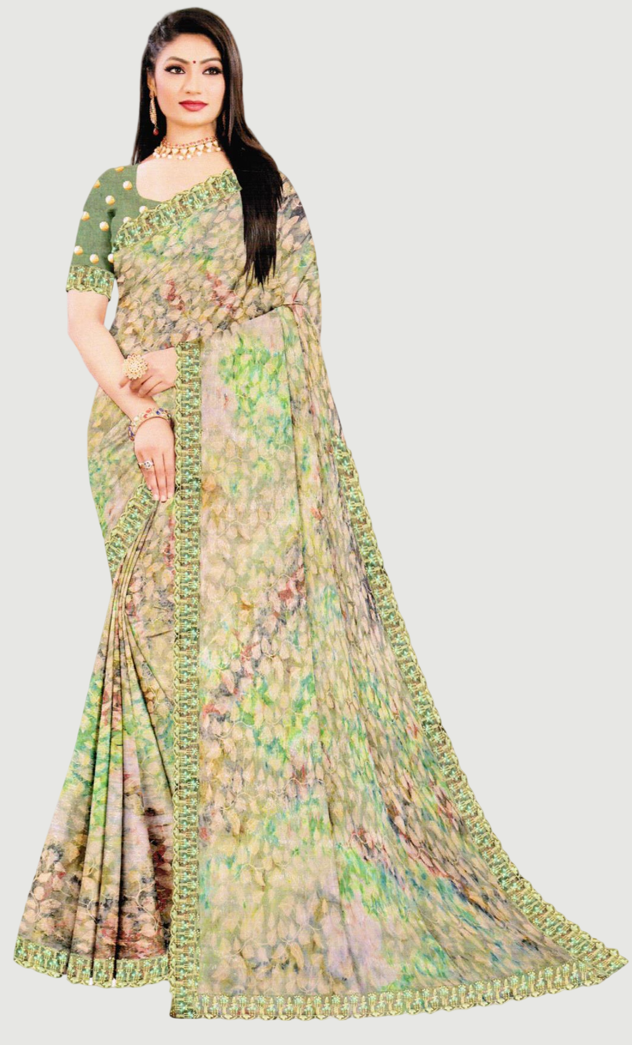 Mint Green Printed Sari