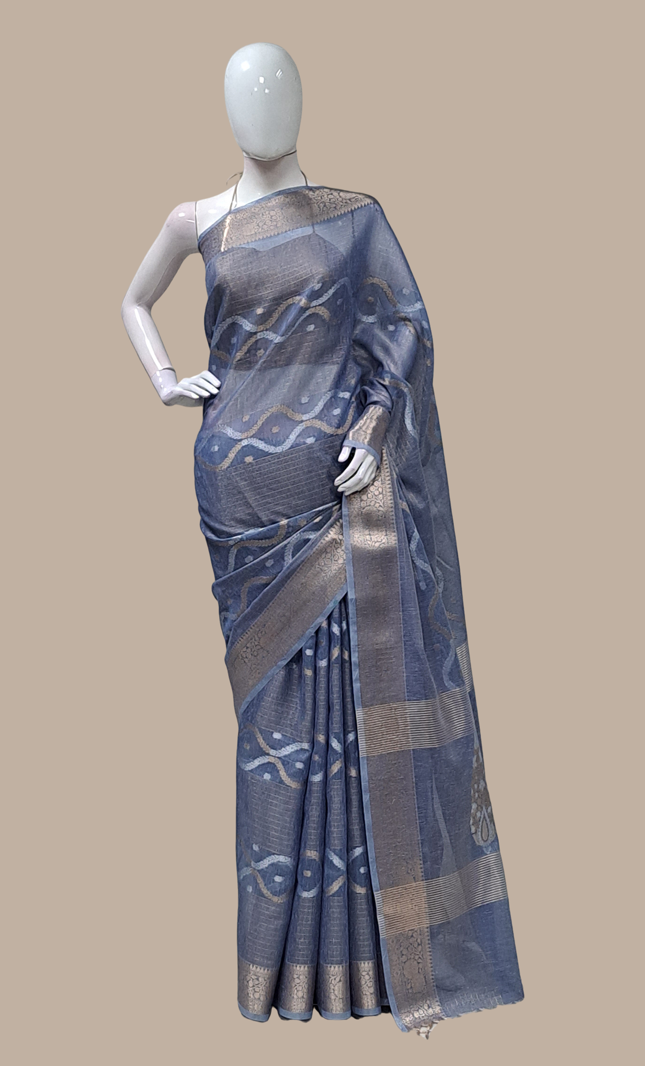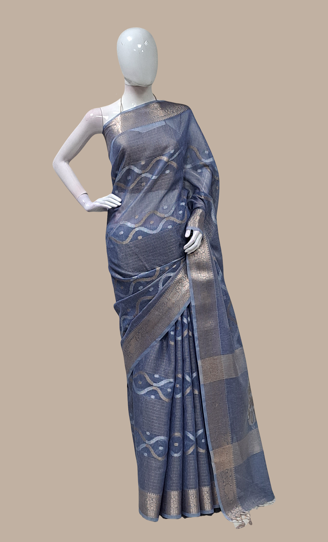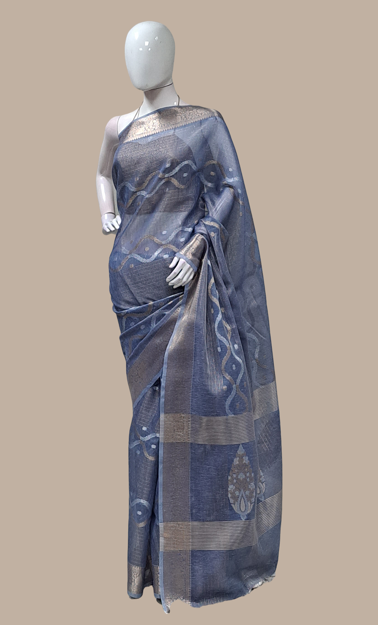 Deep Grey Embroidered Sari
