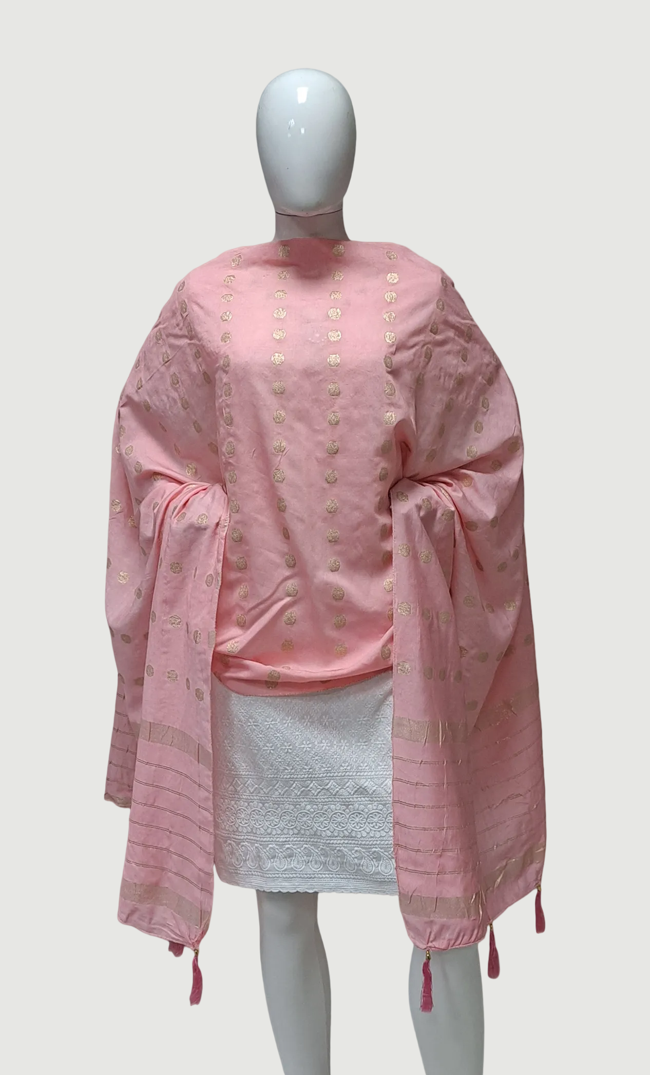Salmon Pink Woven Dupatta