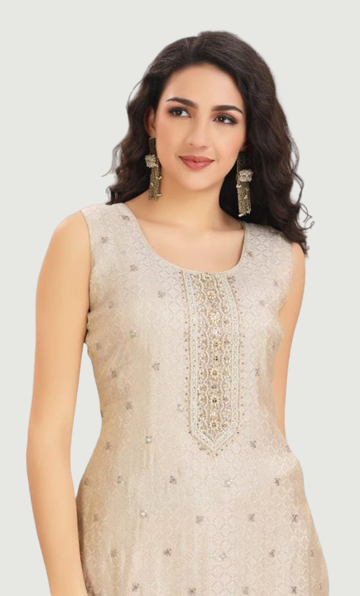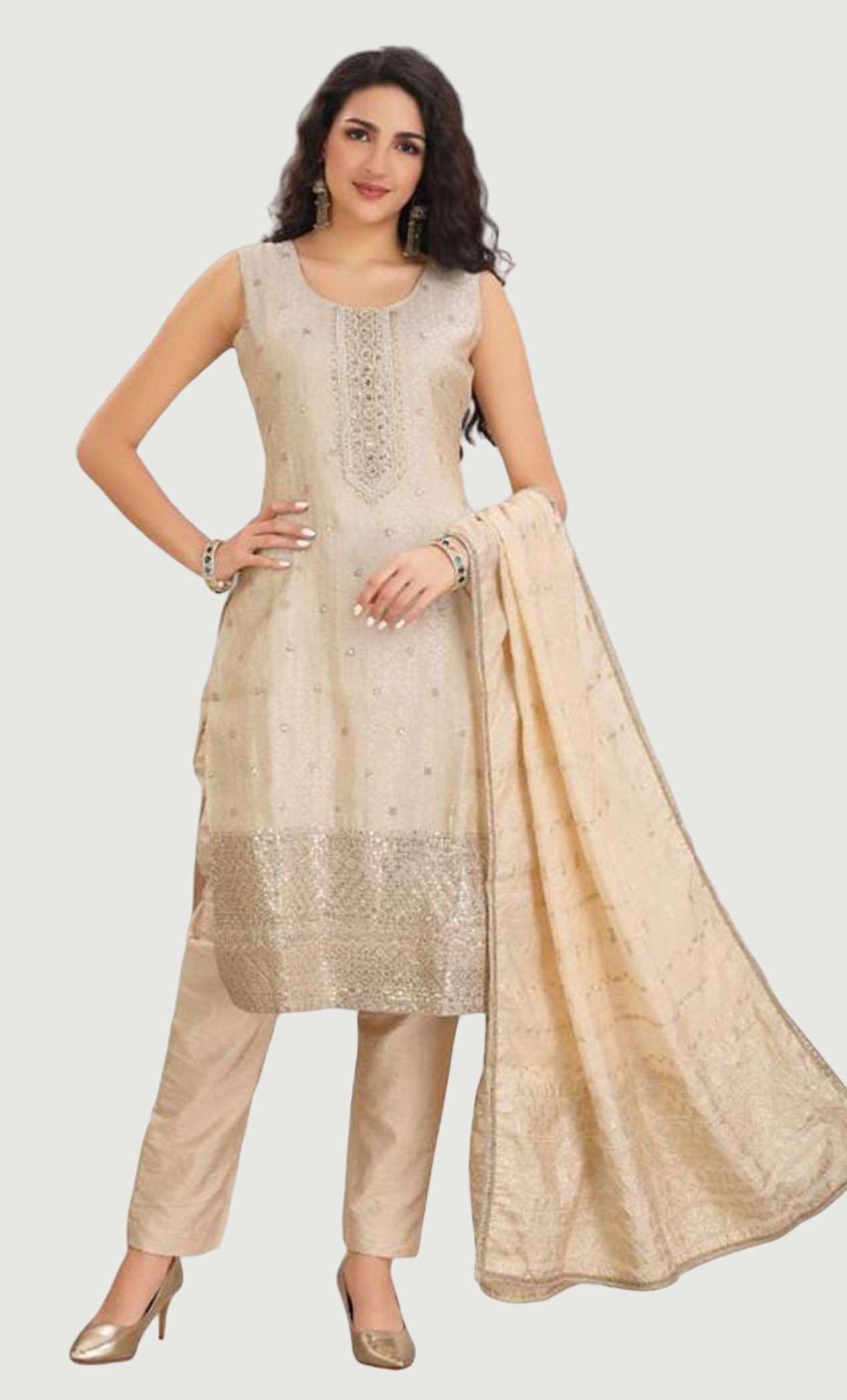 Biscuit Embroidered Punjabi