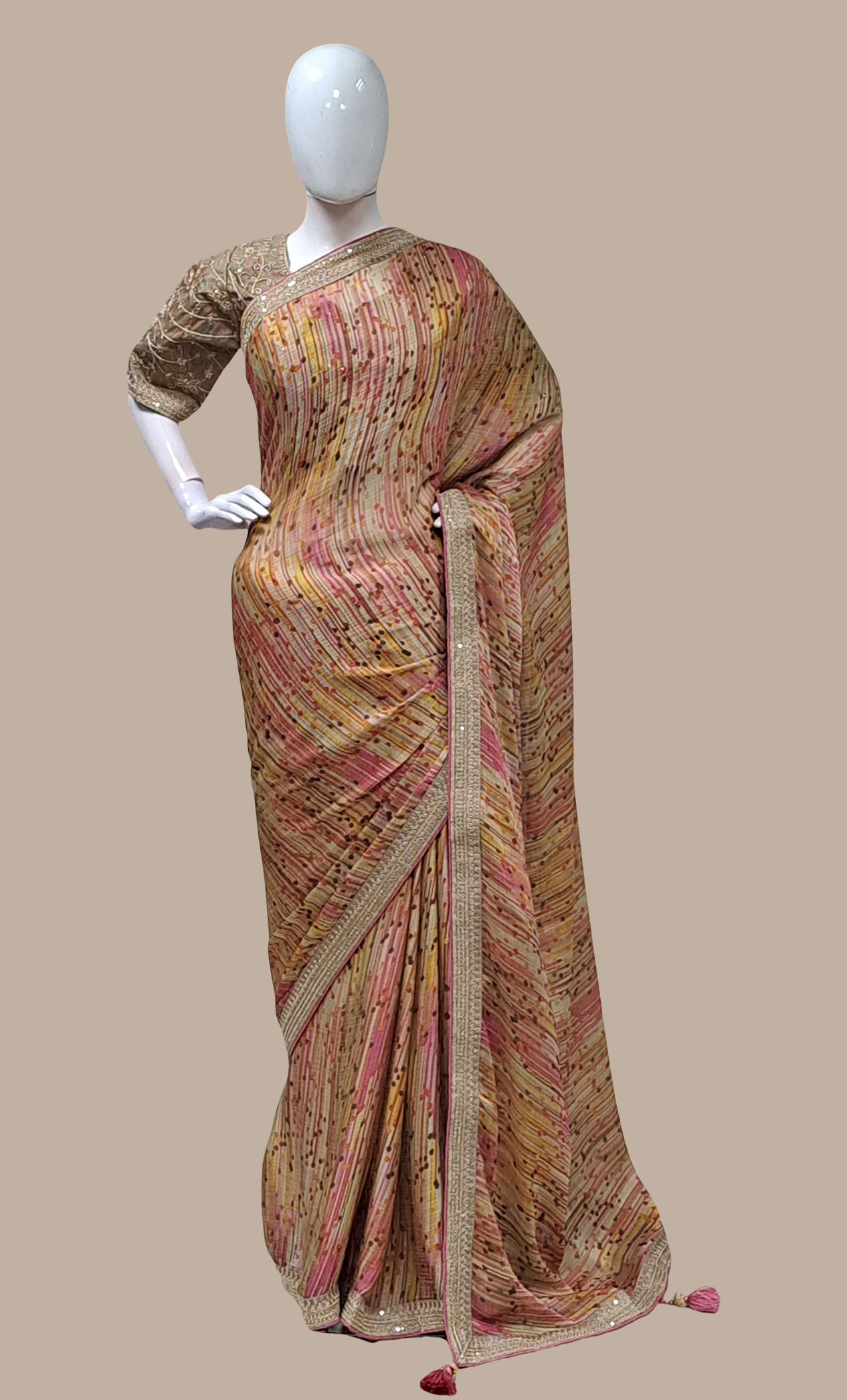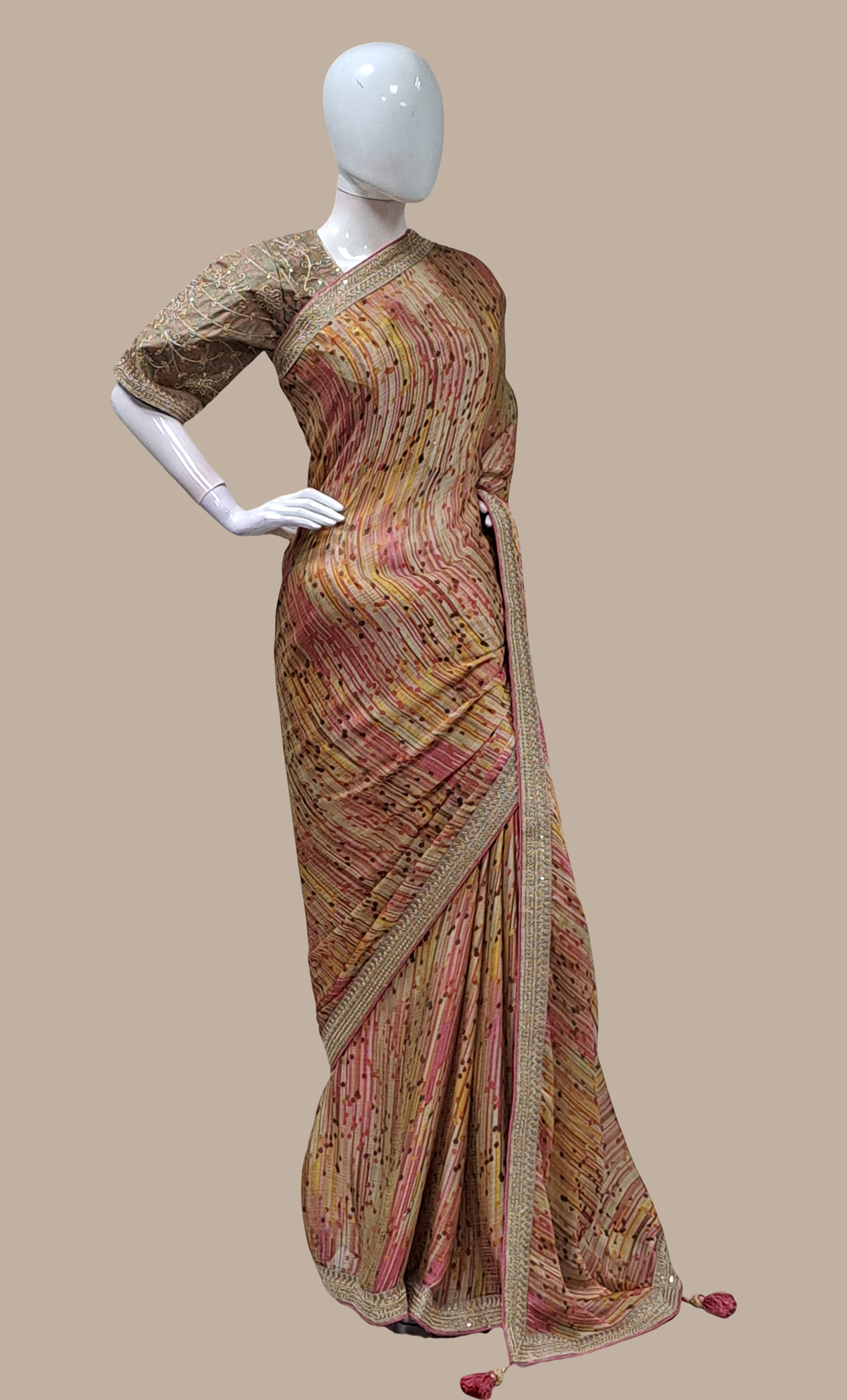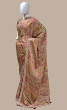 Biscuit Embroidered Sari With Ready Blouse