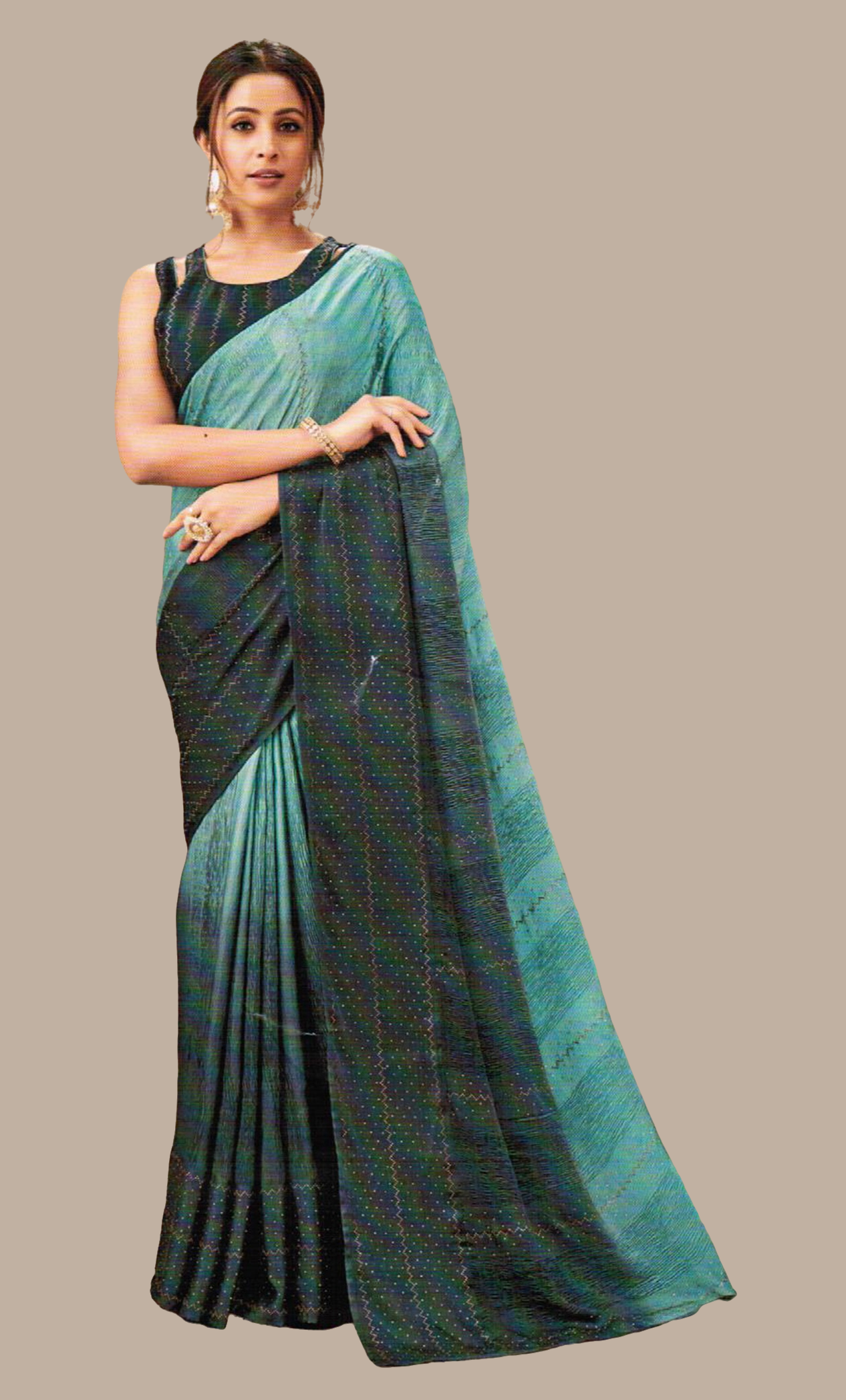 Dark Aqua Stonework Embroidered Sari