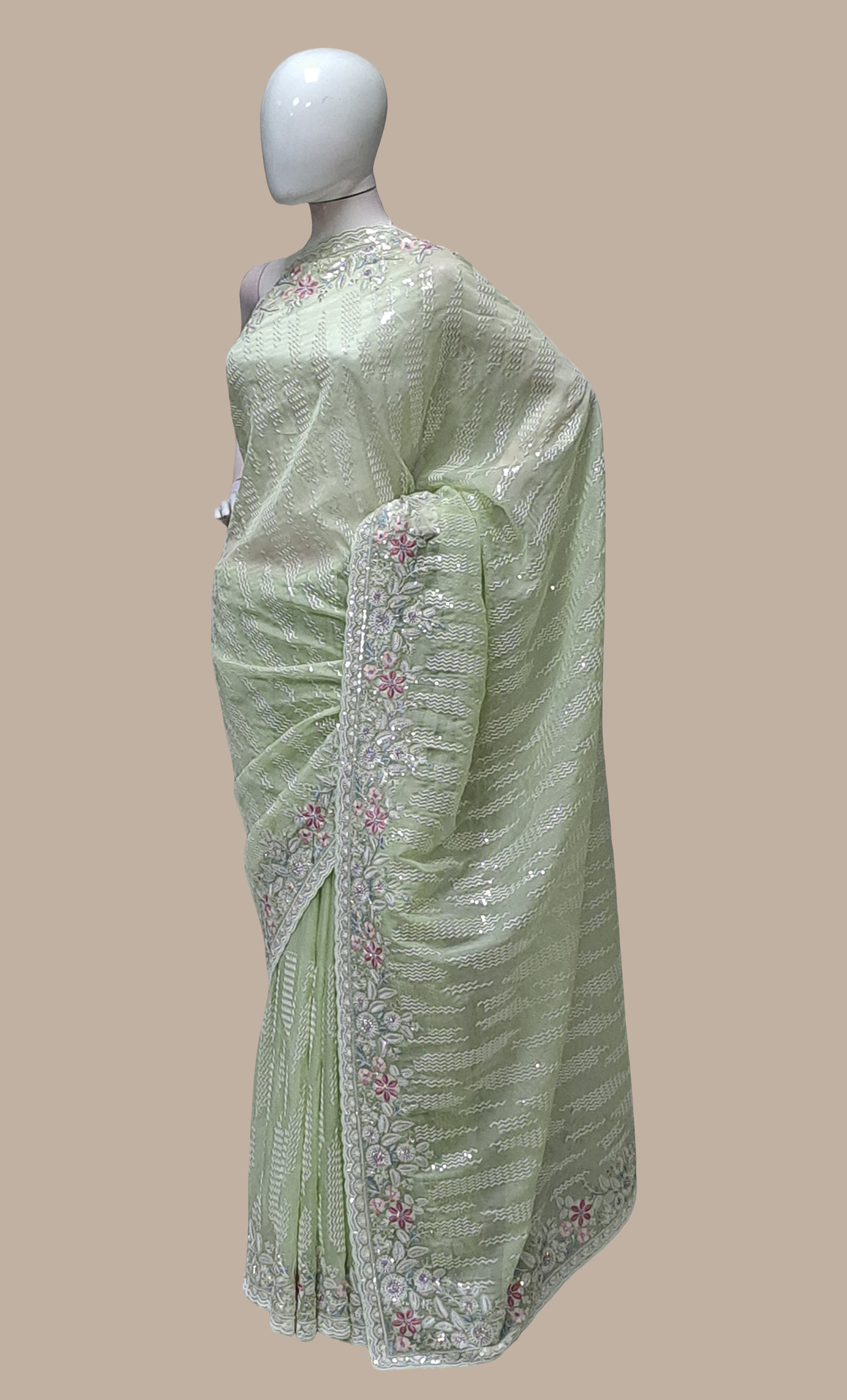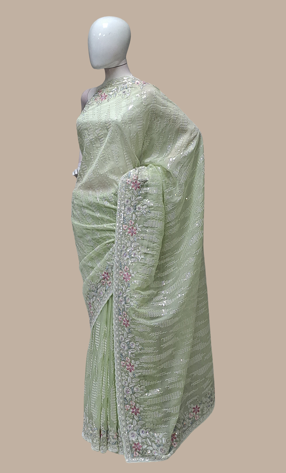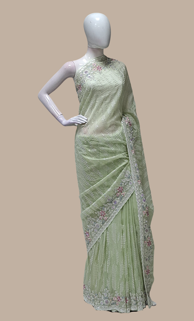 Mint Green Embroidered Sari