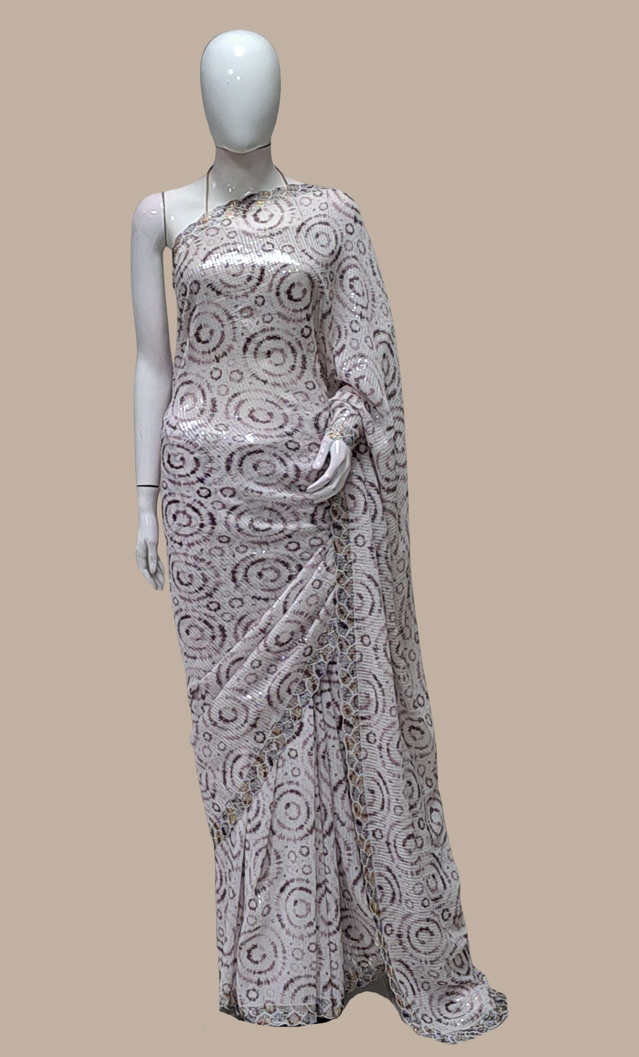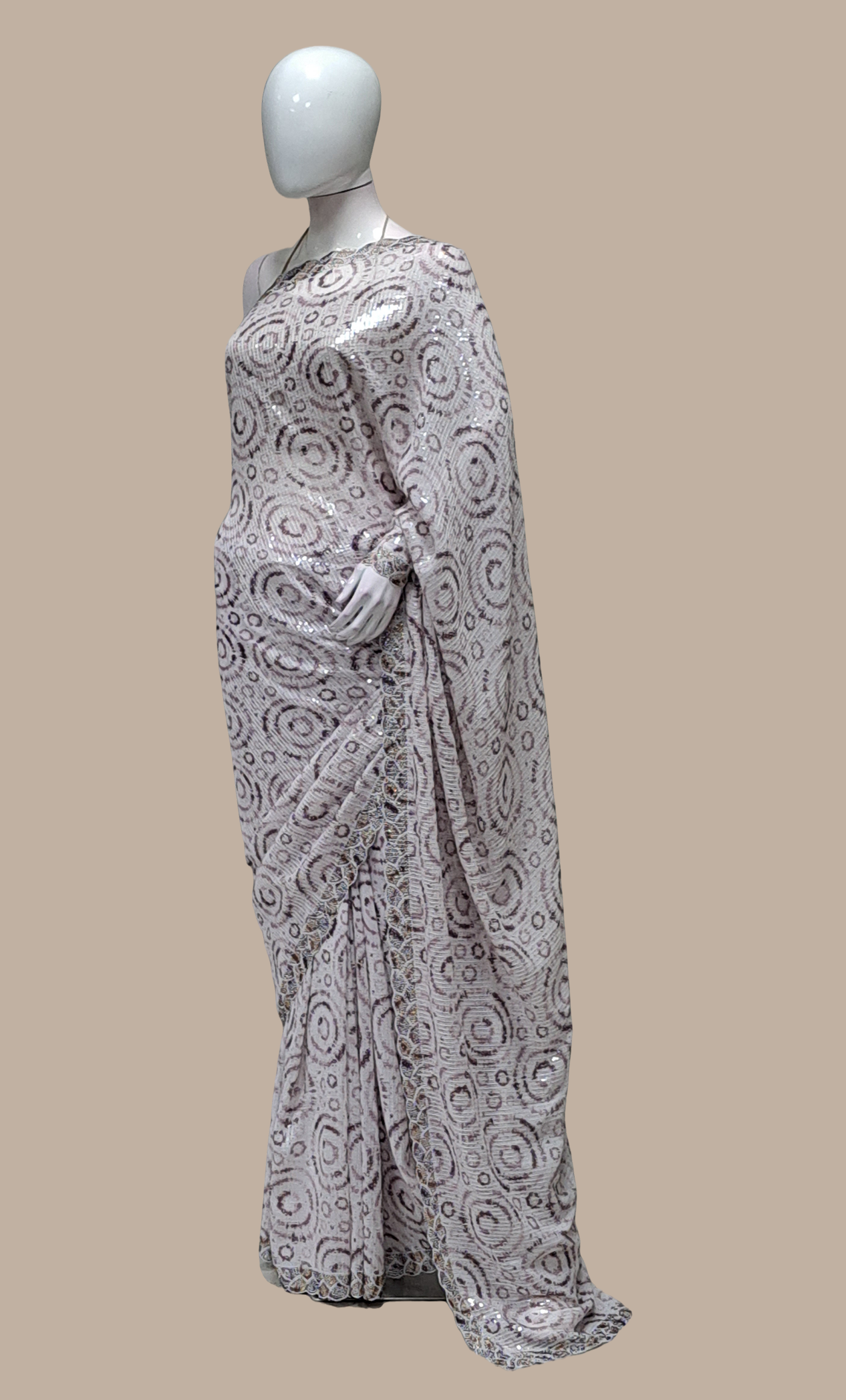 Light Mink Sequin Embroidered Sari