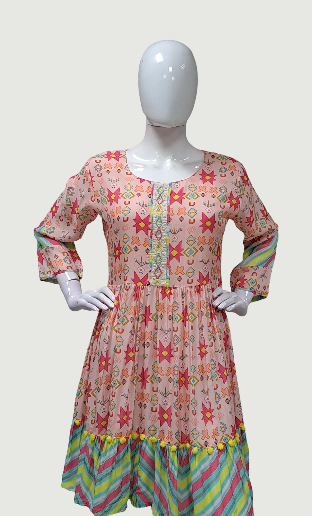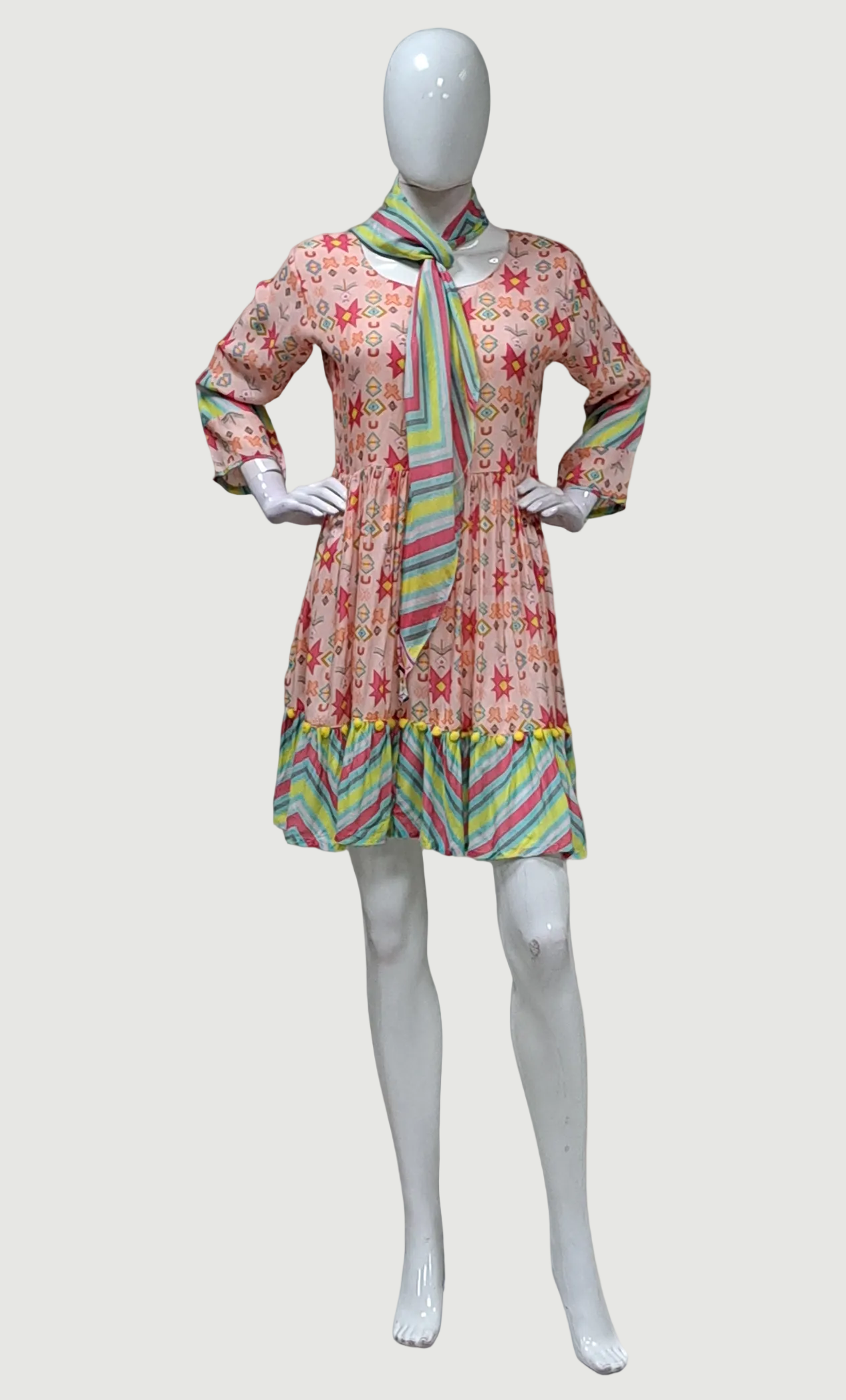 Peach Printed Fusion Dress