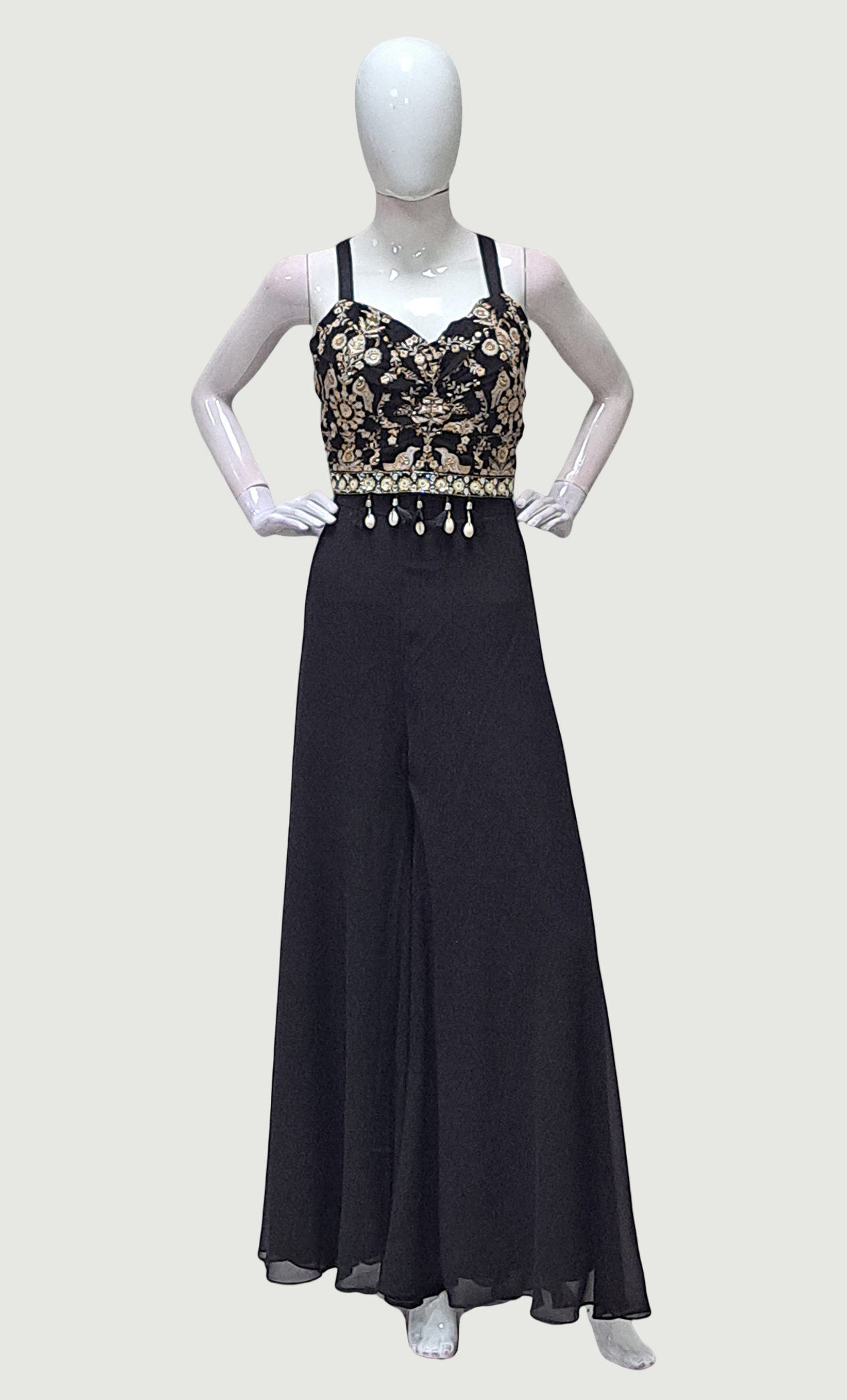 Black Embroidered Palazzo Set