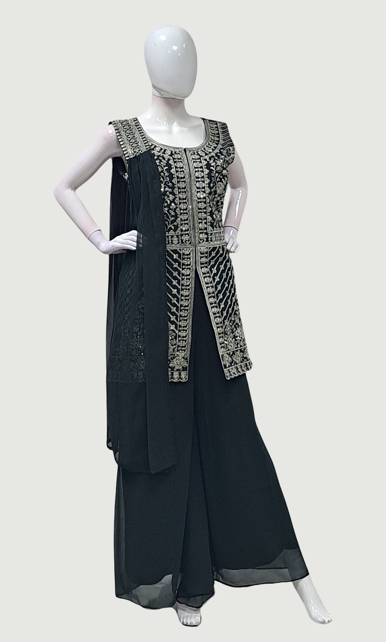 Bottle Green Embroidered Palazzo Set