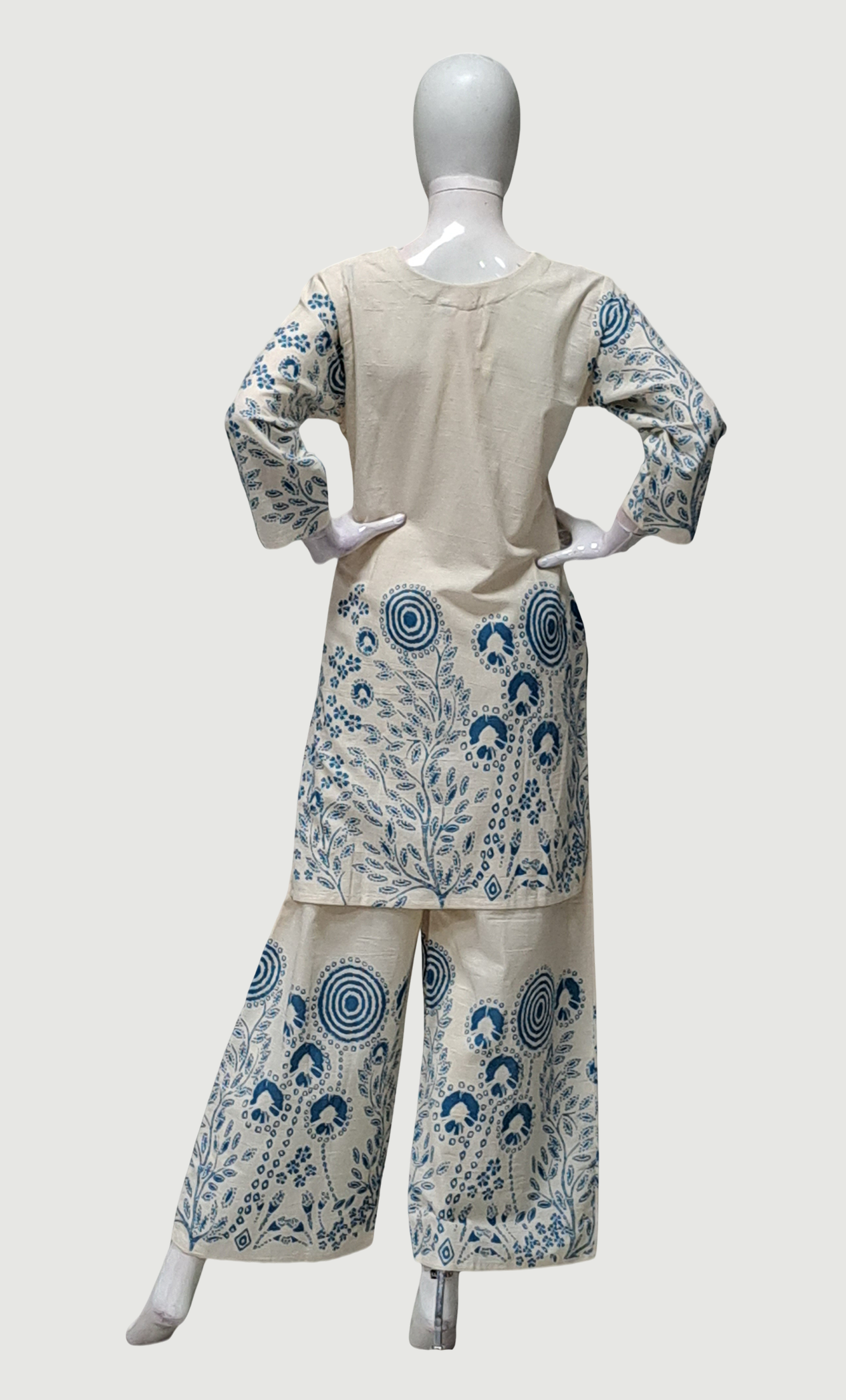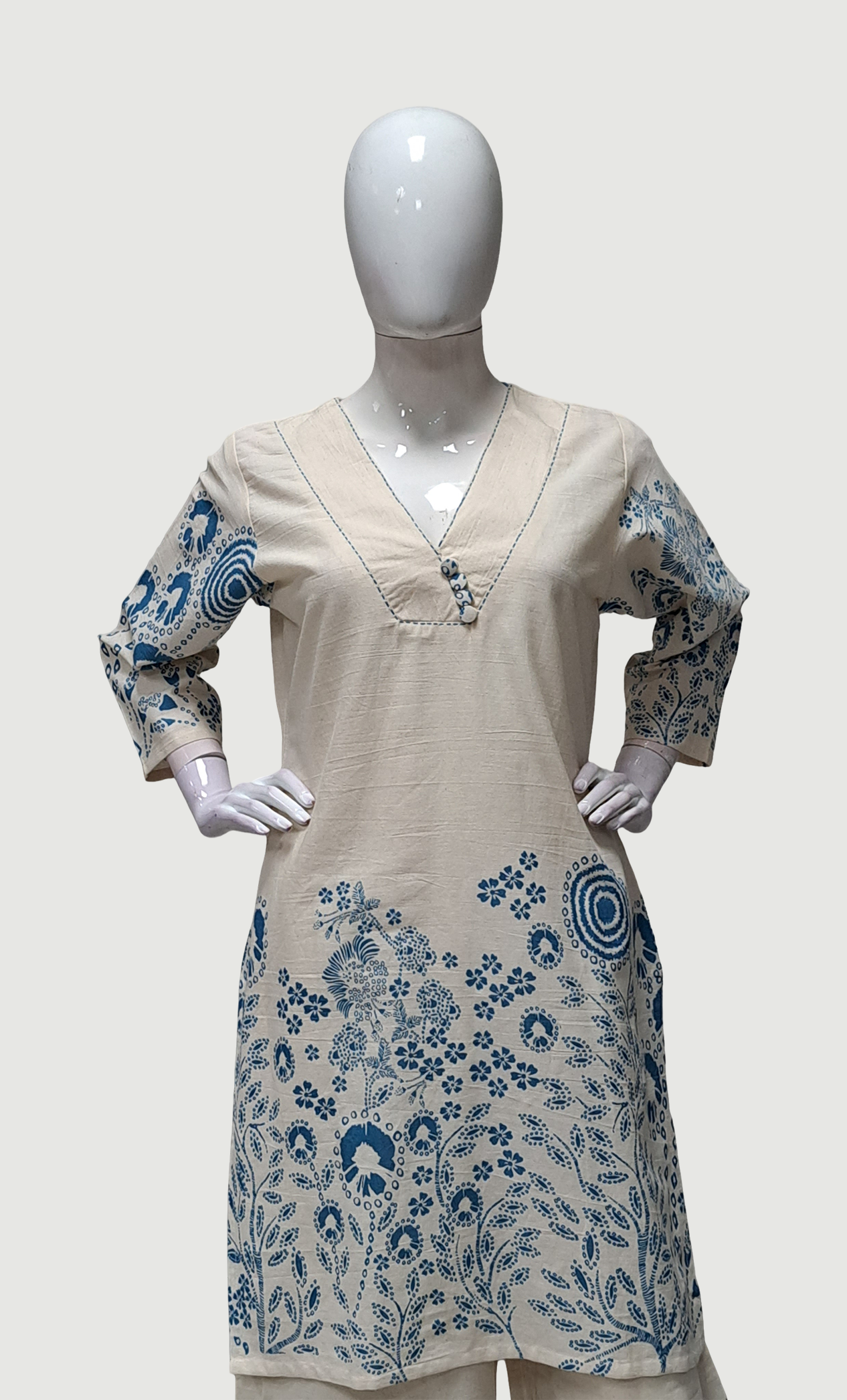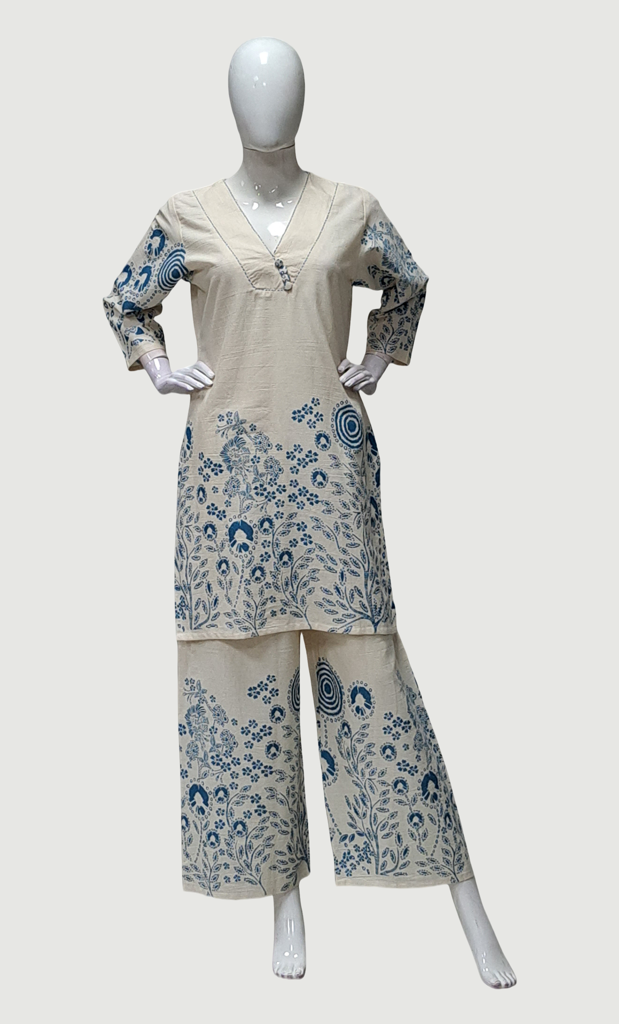 Cream Embroidered Kurti Top & Pants