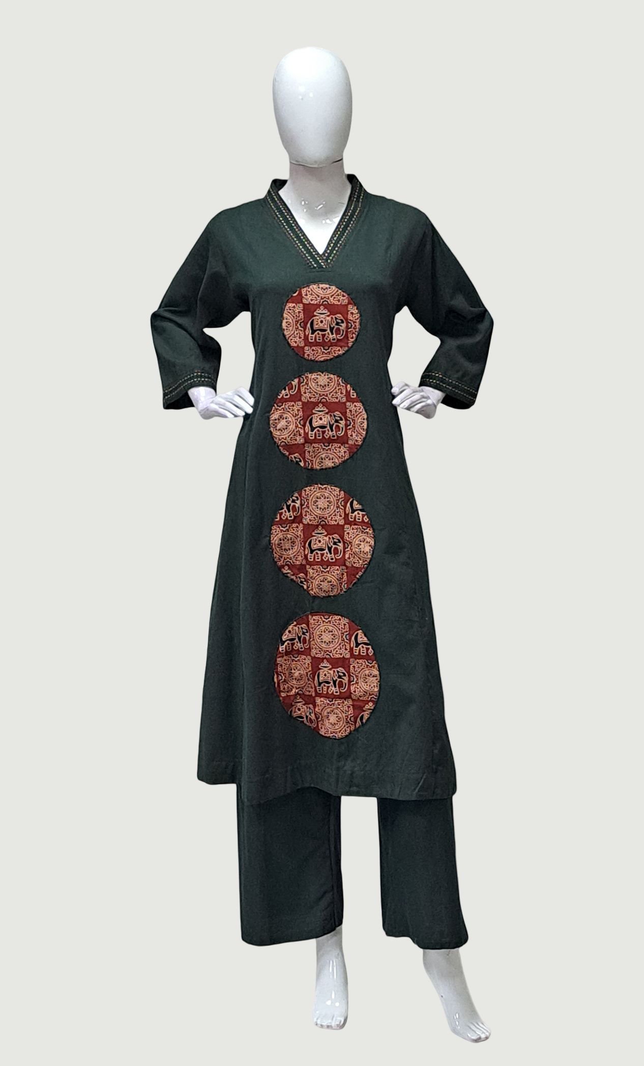 Dark Green Embroidered Kurti Top & Pants