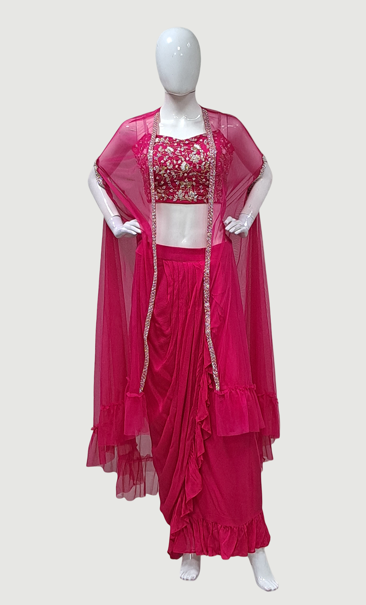 Deep Cerise Embroidered Skirt Set