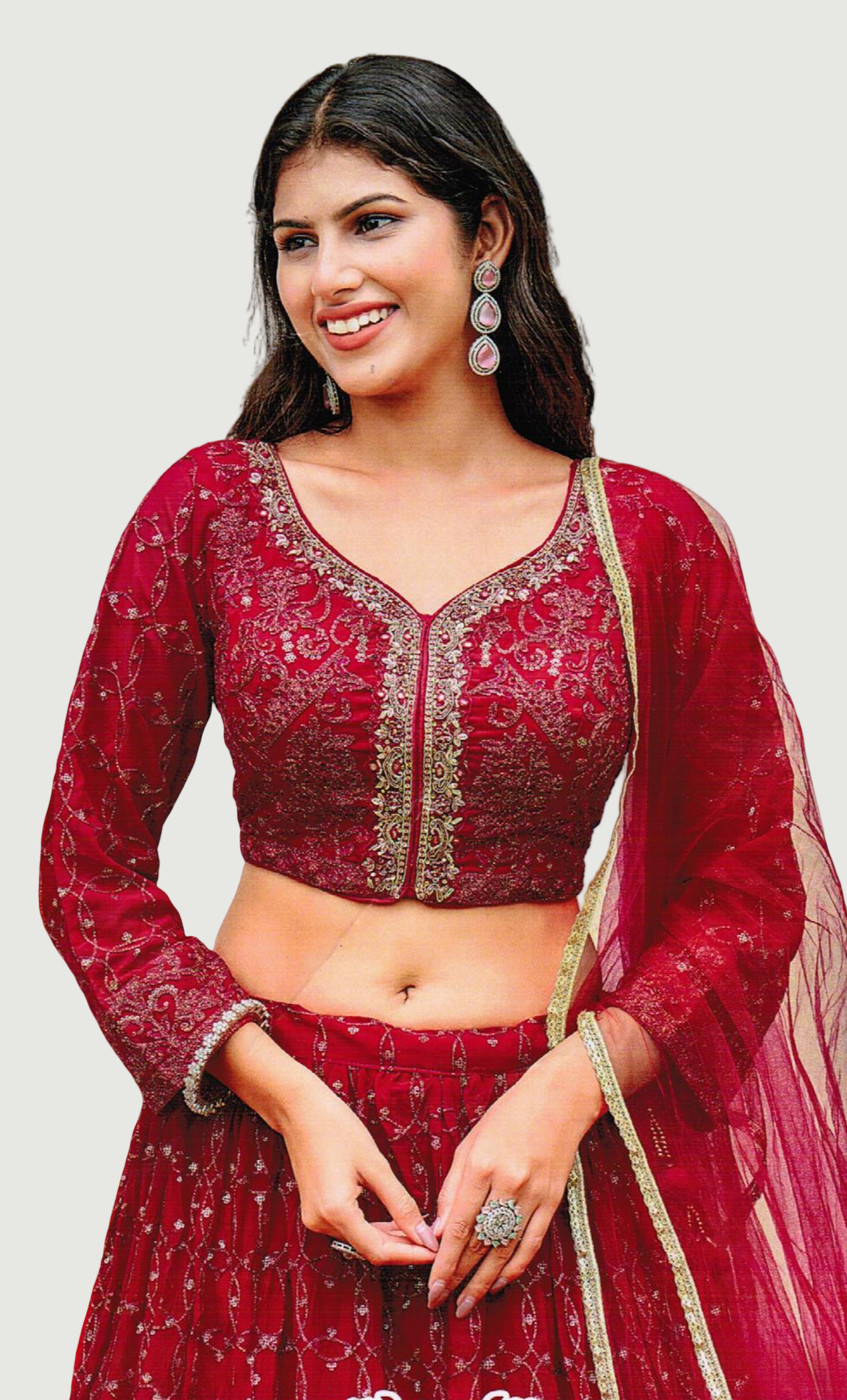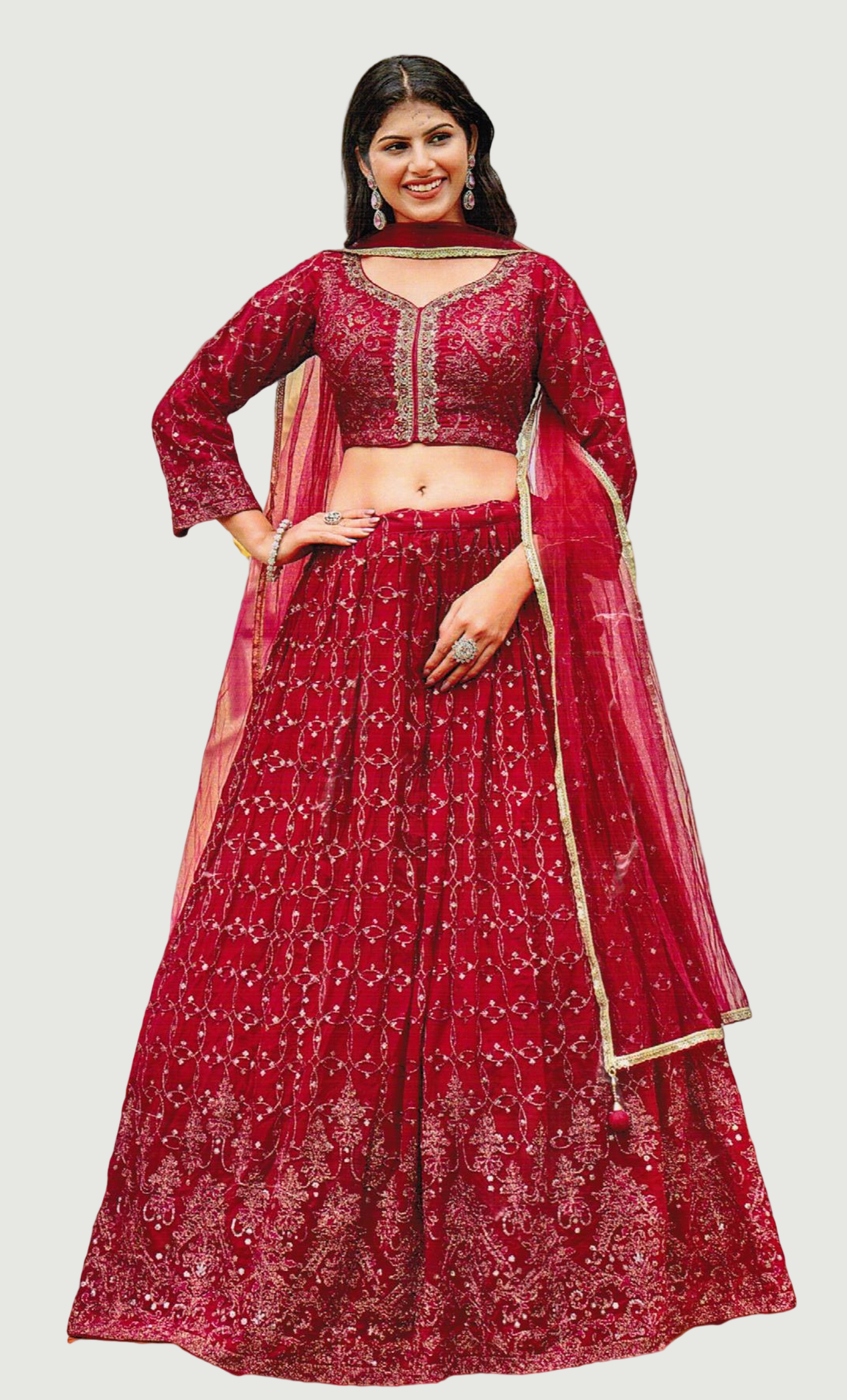 Deep Cherry Embroidered Chania Choli Set