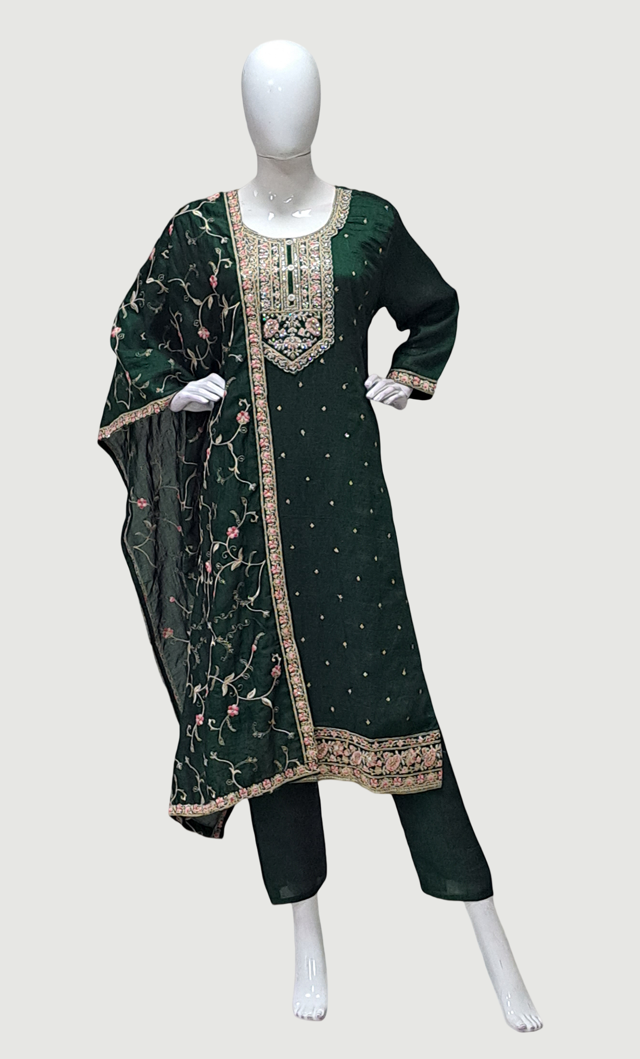 Deep Green Embroidered Punjabi