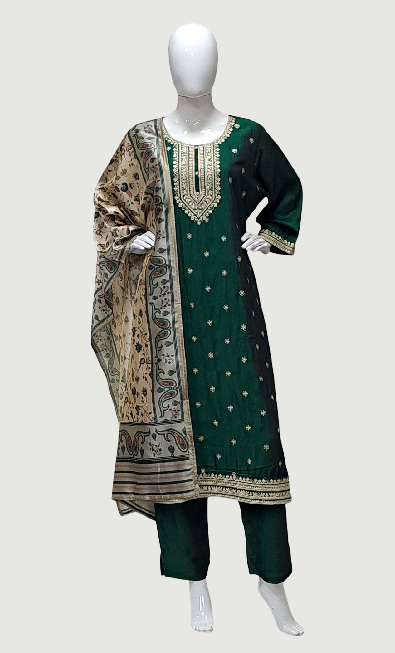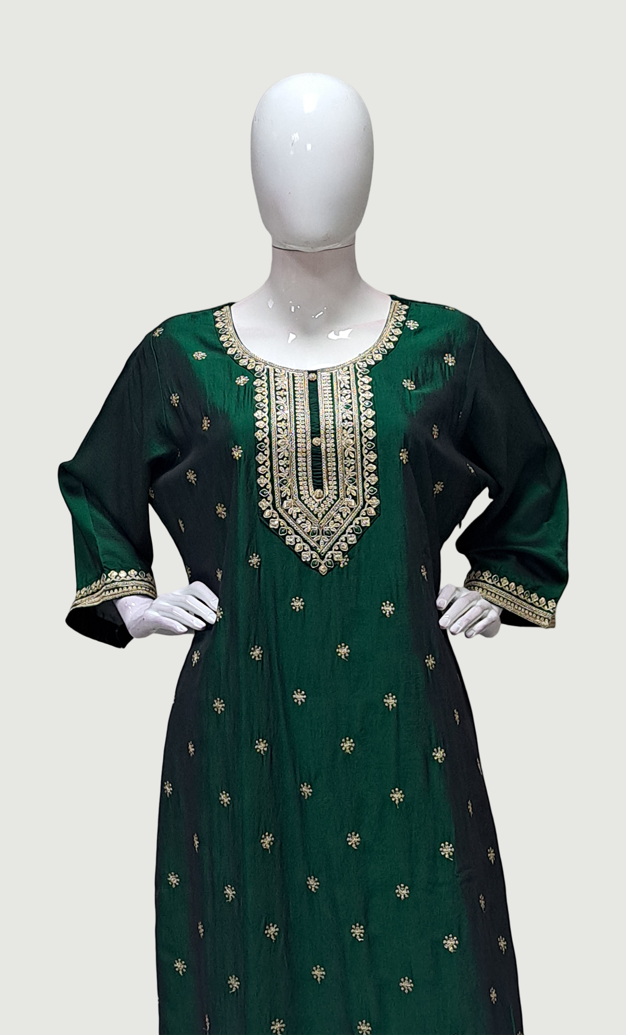 Deep Green Embroidered Punjabi
