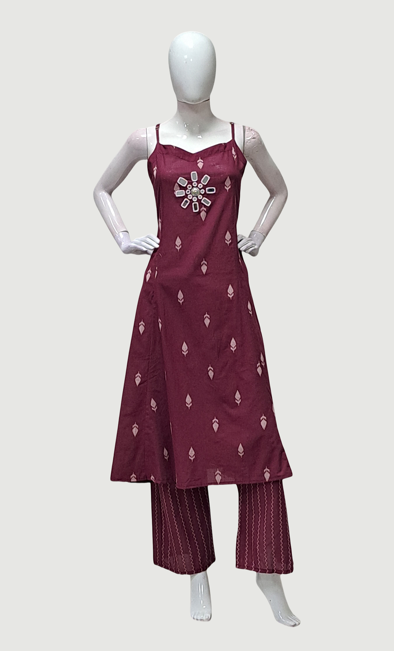 Deep Plum Embroidered Kurti Top & Pants