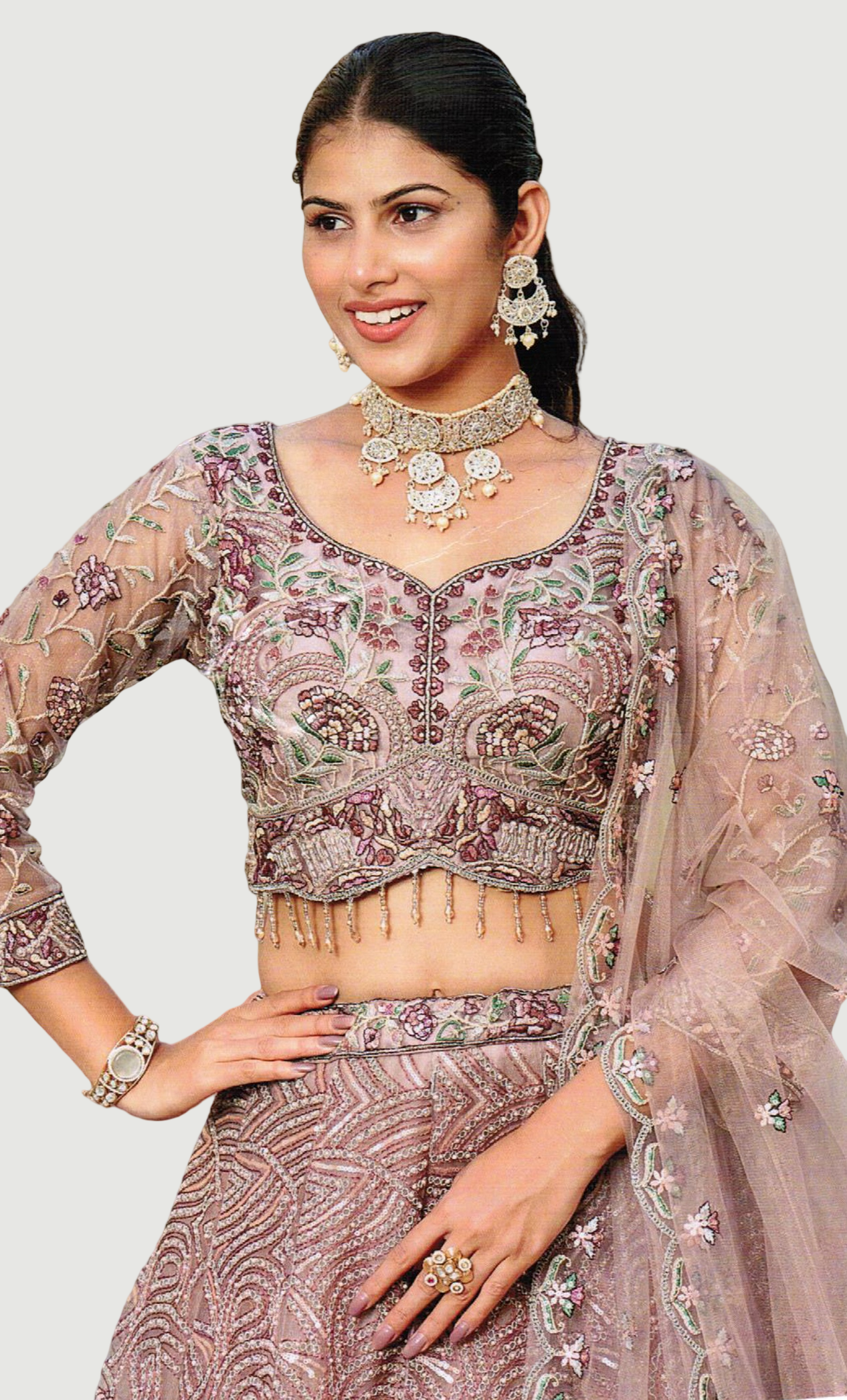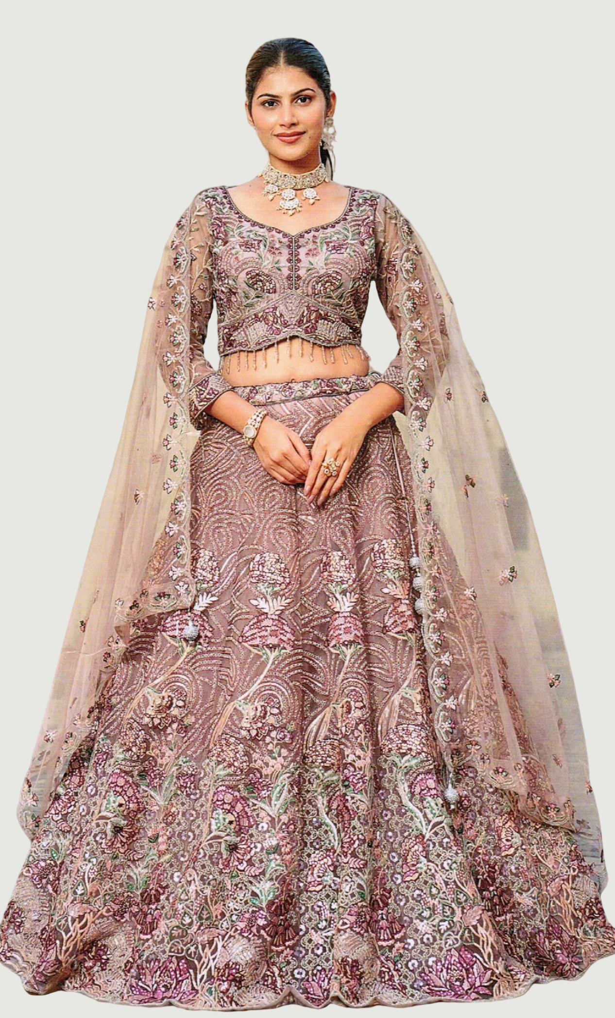 Dusty Mink Embroidered Chania Choli Set