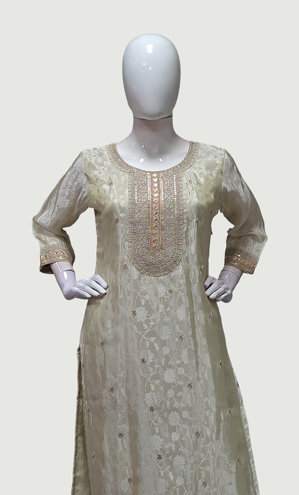 Light Biscuit Embroidered Punjabi