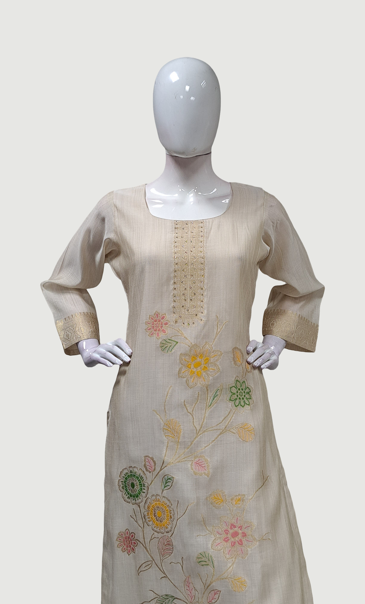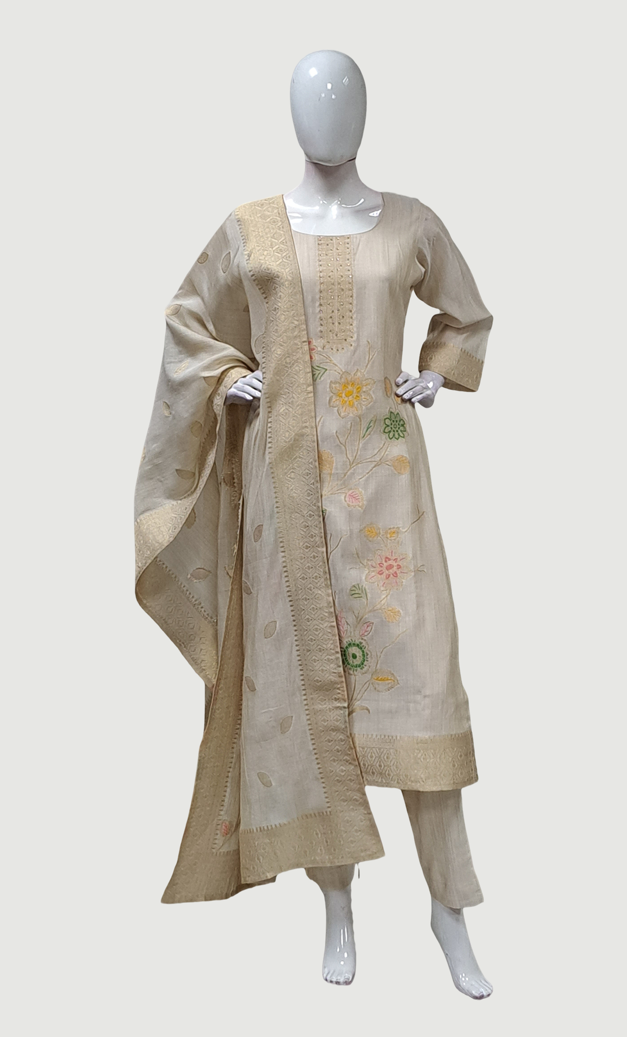 Light Biscuit Embroidered Punjabi