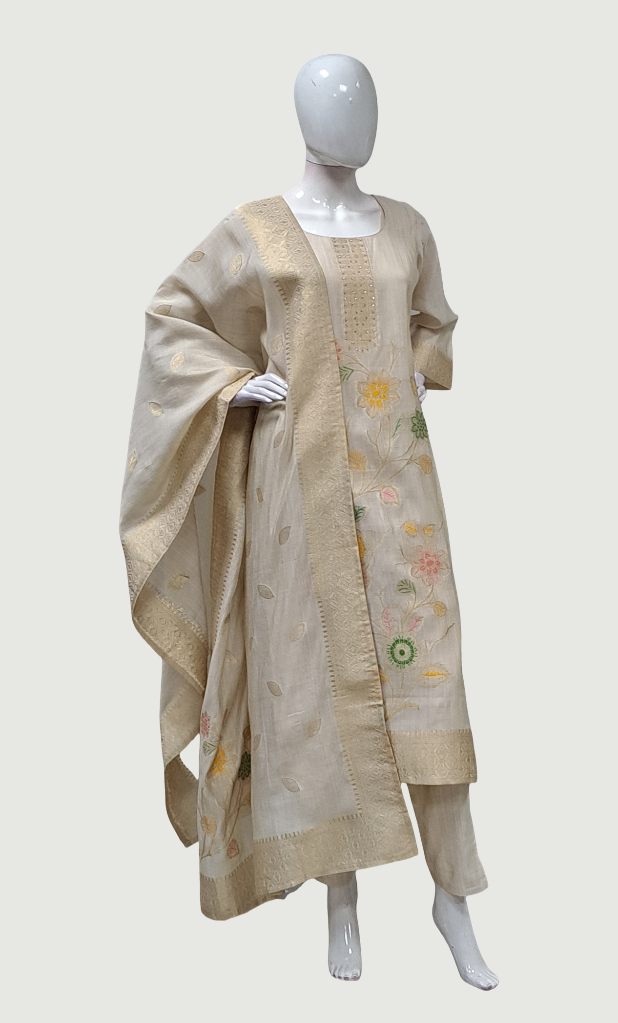 • Cotton silk dupatta with gold woven patterns
