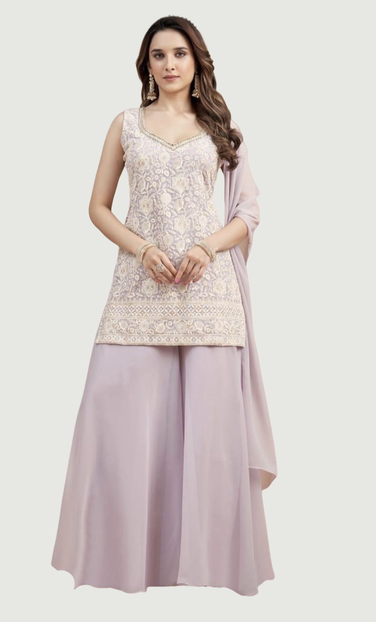 Soft Lilac Embroidered Palazzo Set