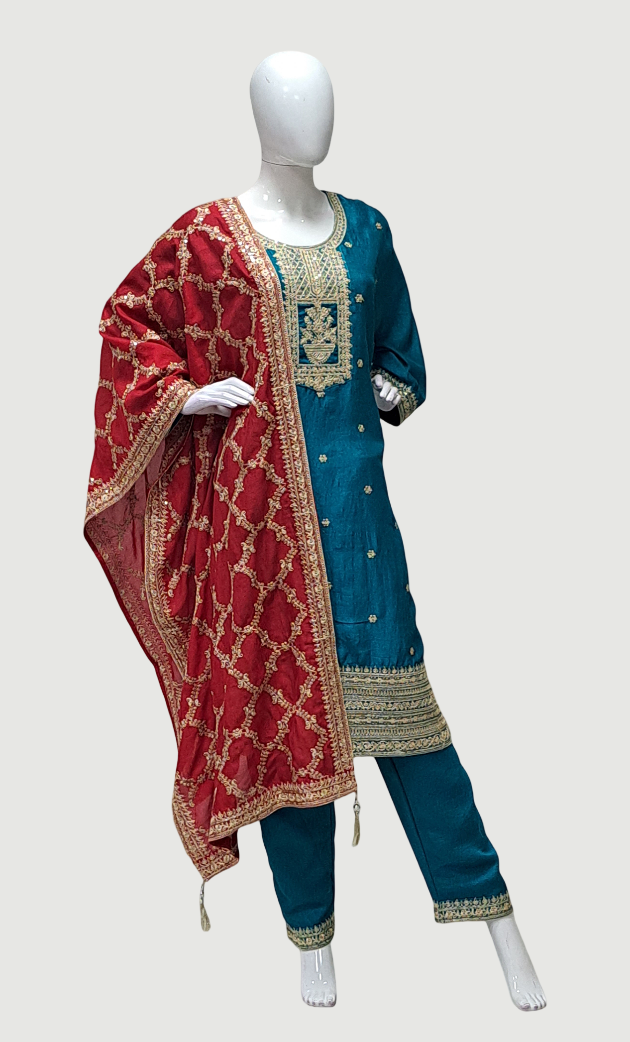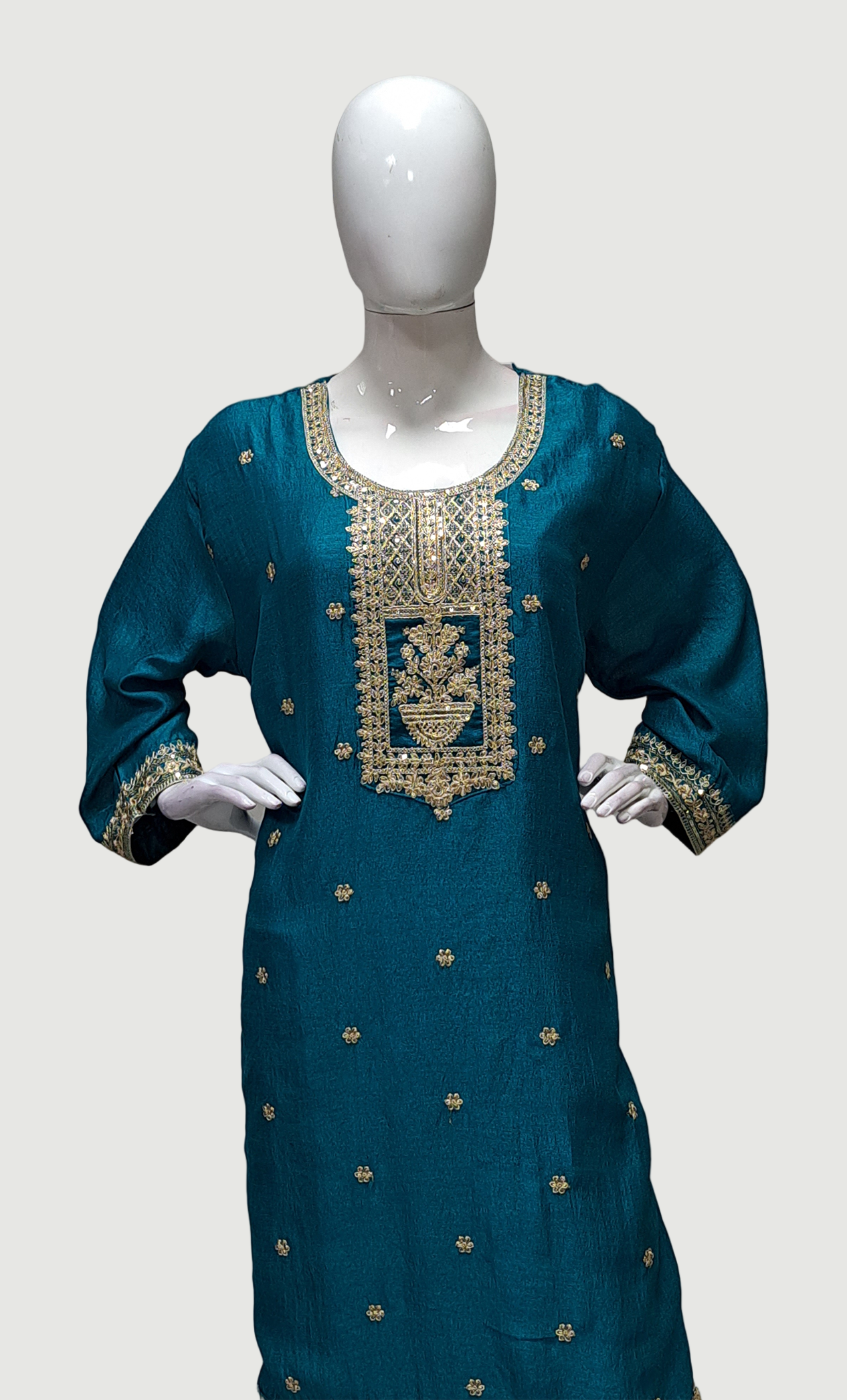 Teal Green Embroidered Punjabi