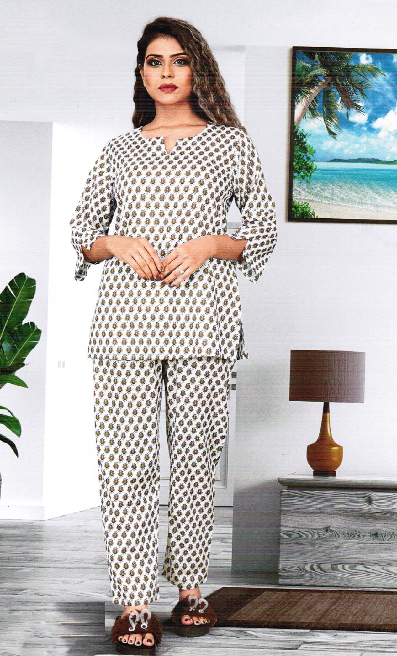 White Printed Cotton Leisure Set