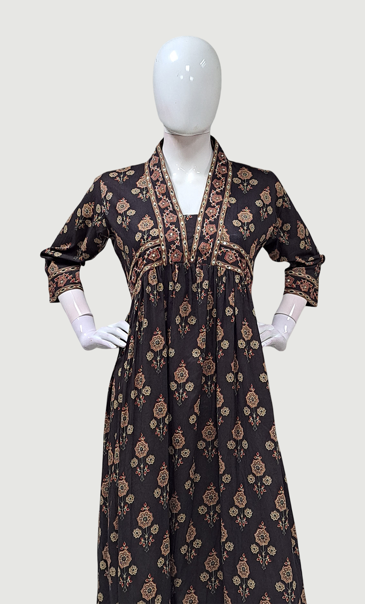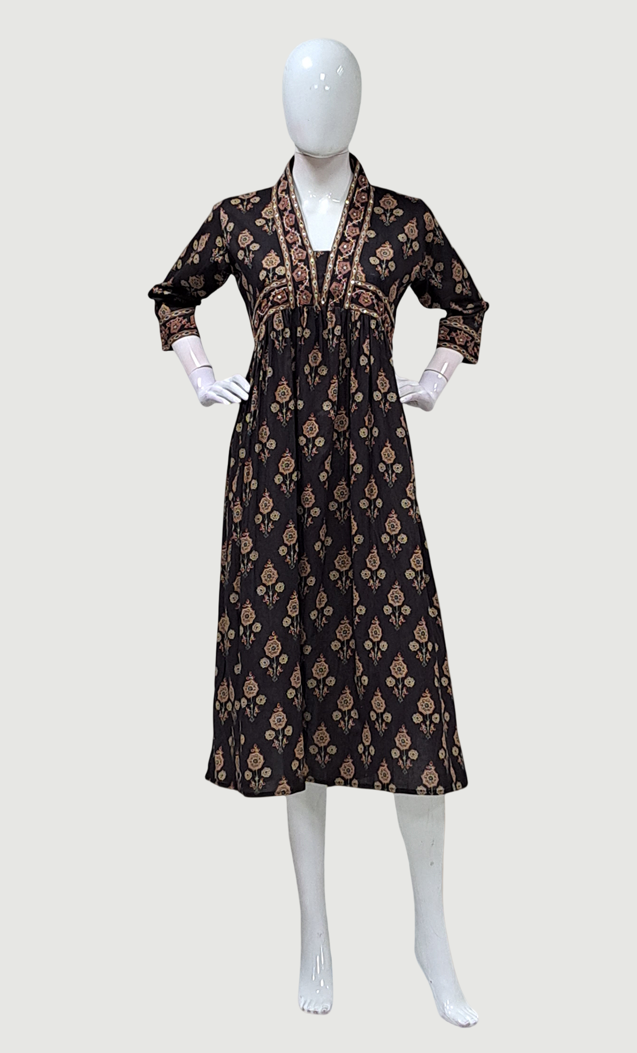 Chocolate Brown Printed Kurti Dress