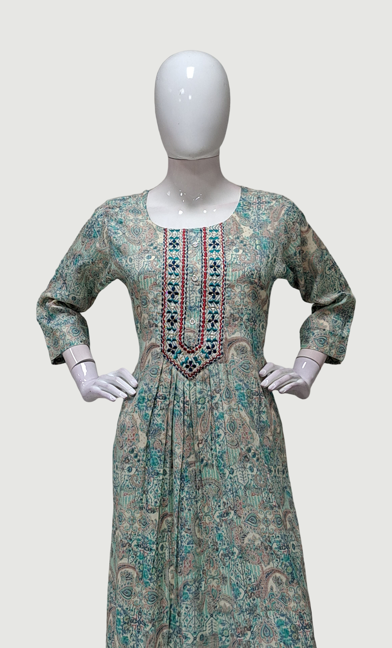 Sea Green Printed Kurti Dress