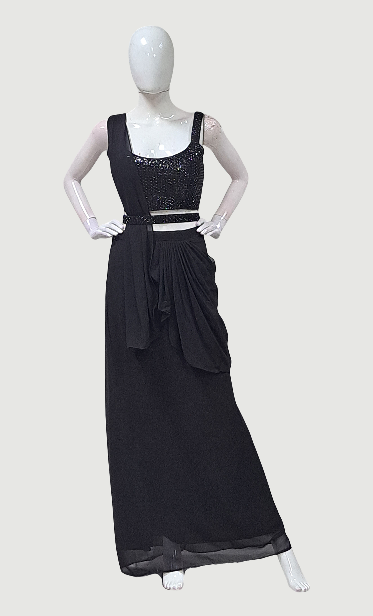 Black Embroidered Skirt Set