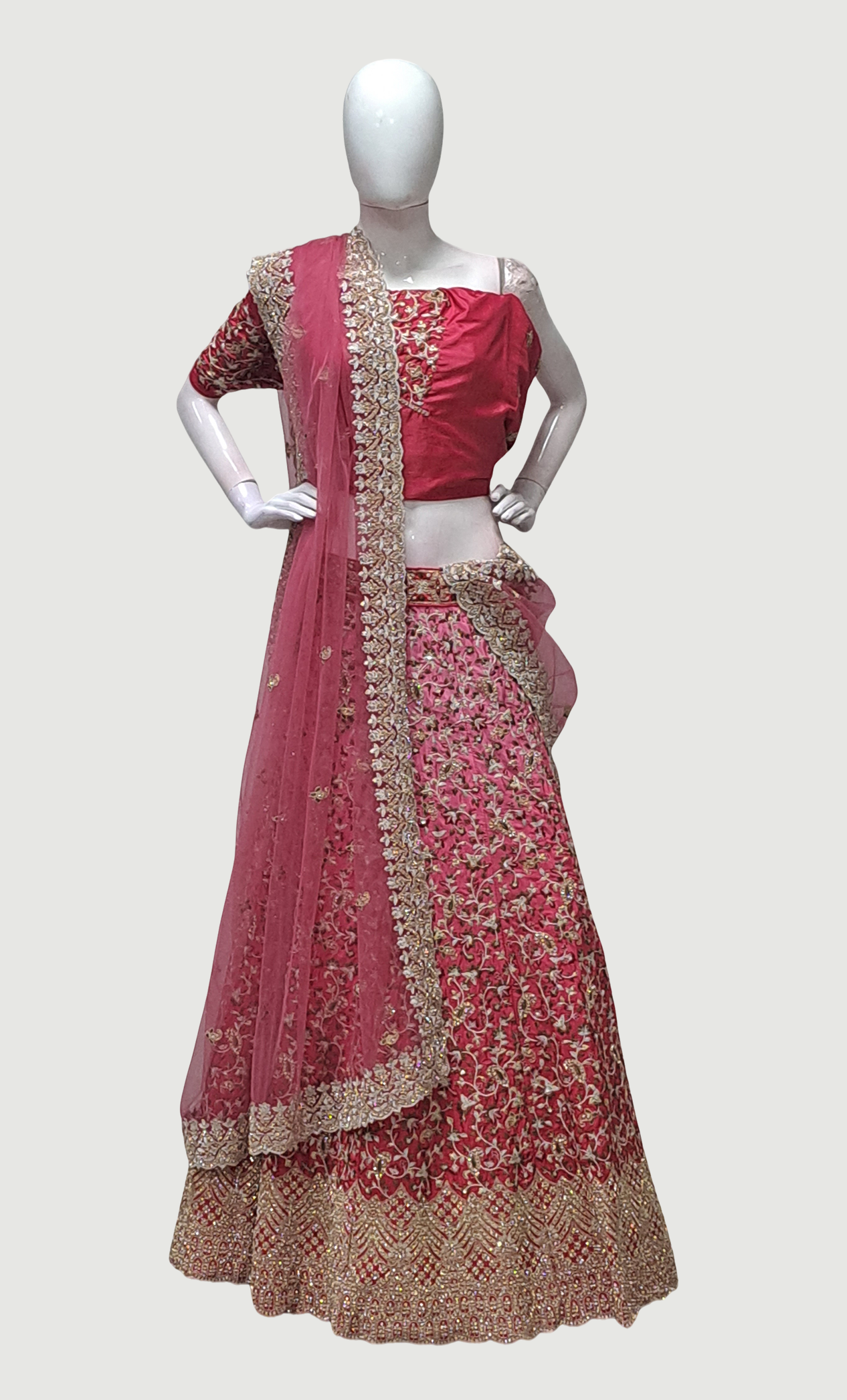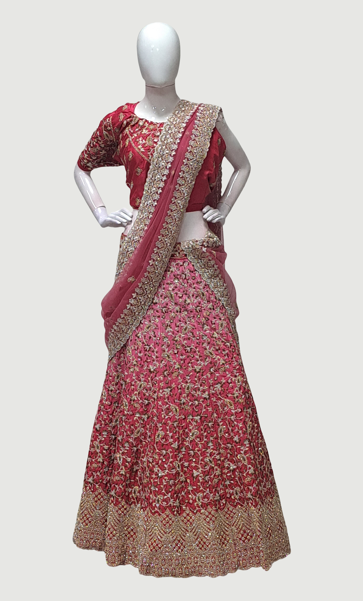 Cerise Embroidered Lengha