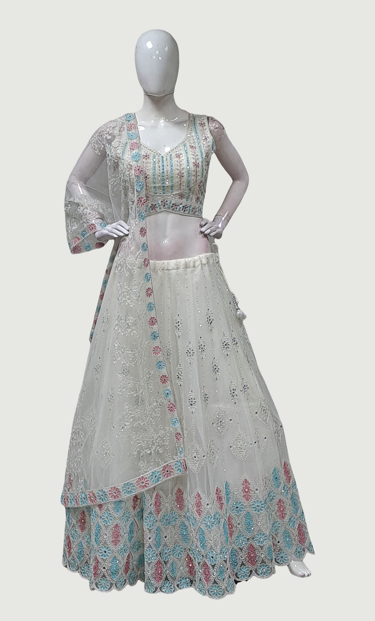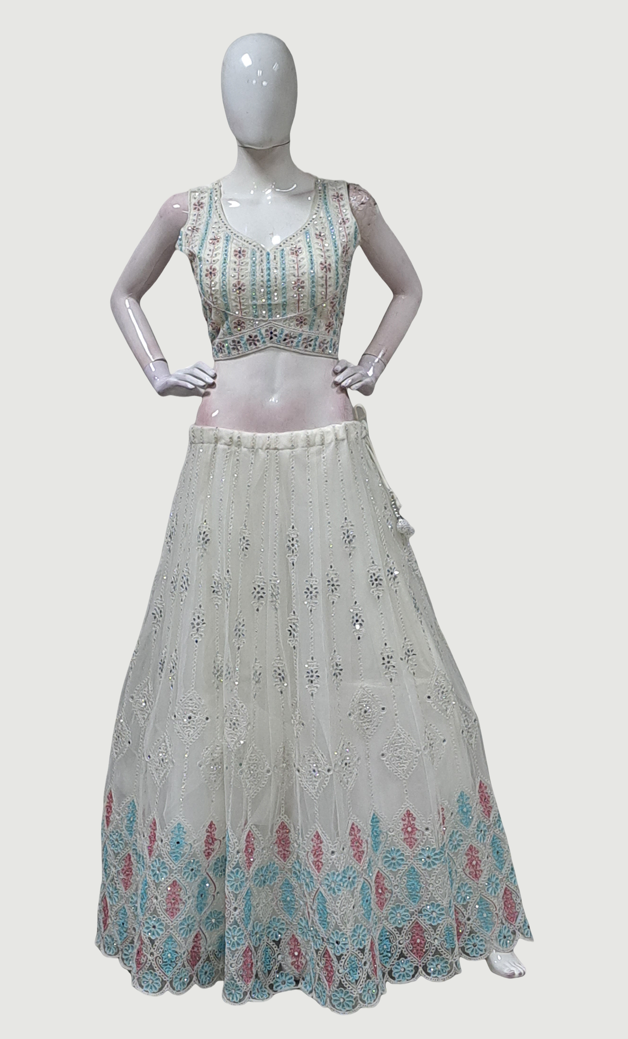 Cream Embroidered Chania Choli Set