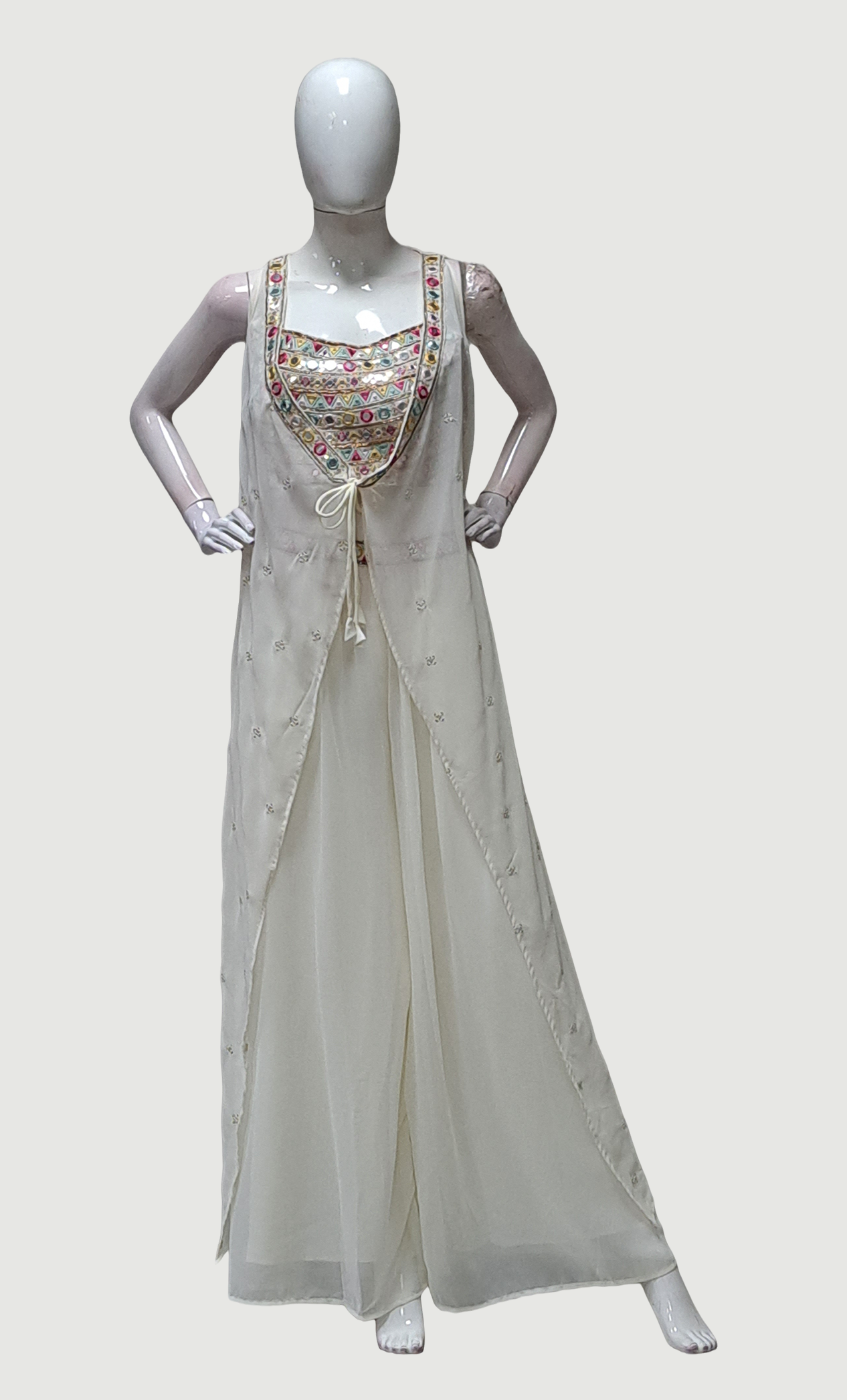 • Chiffon coat with embroidered sequin designs