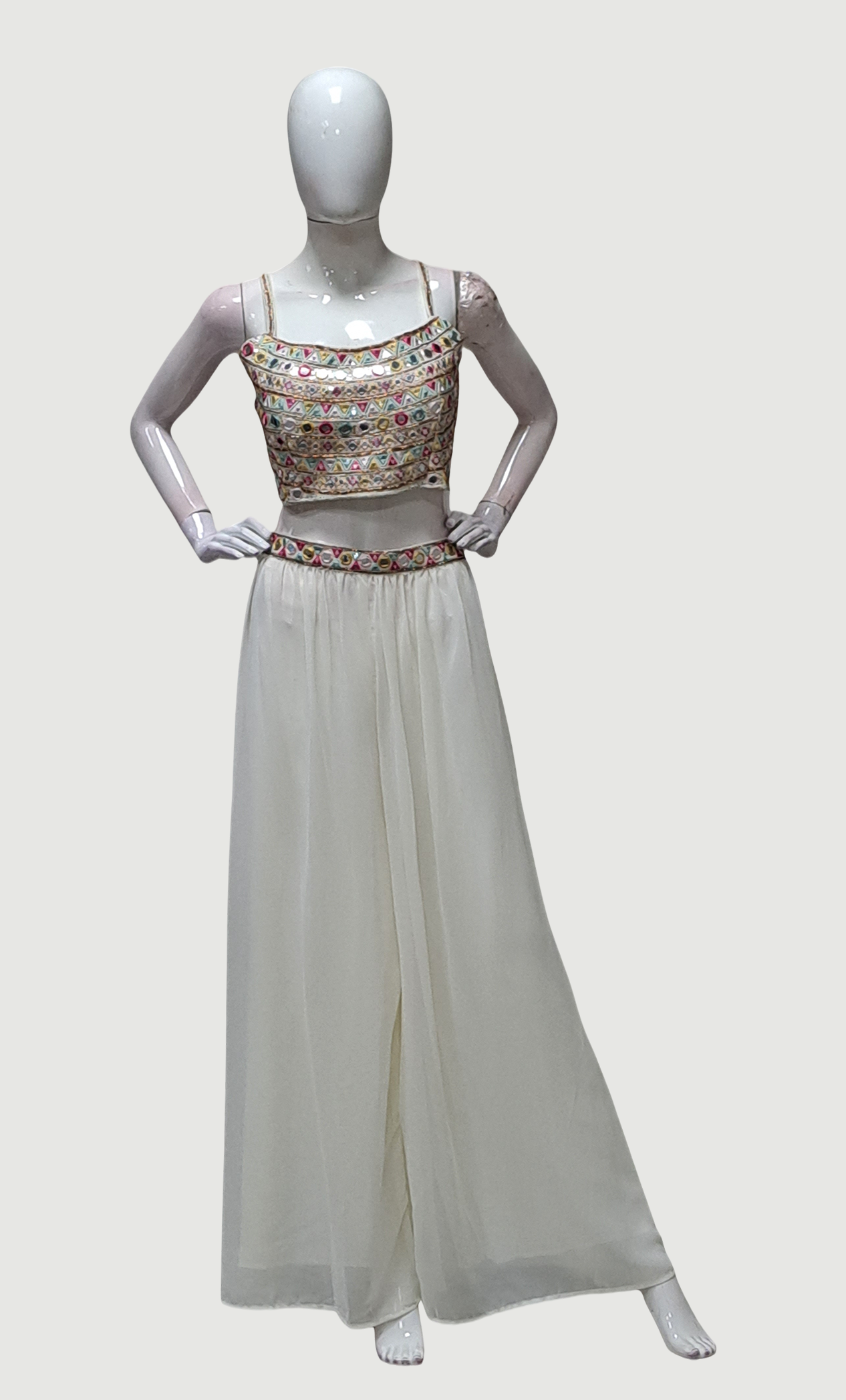 Cream Embroidered Palazzo Set