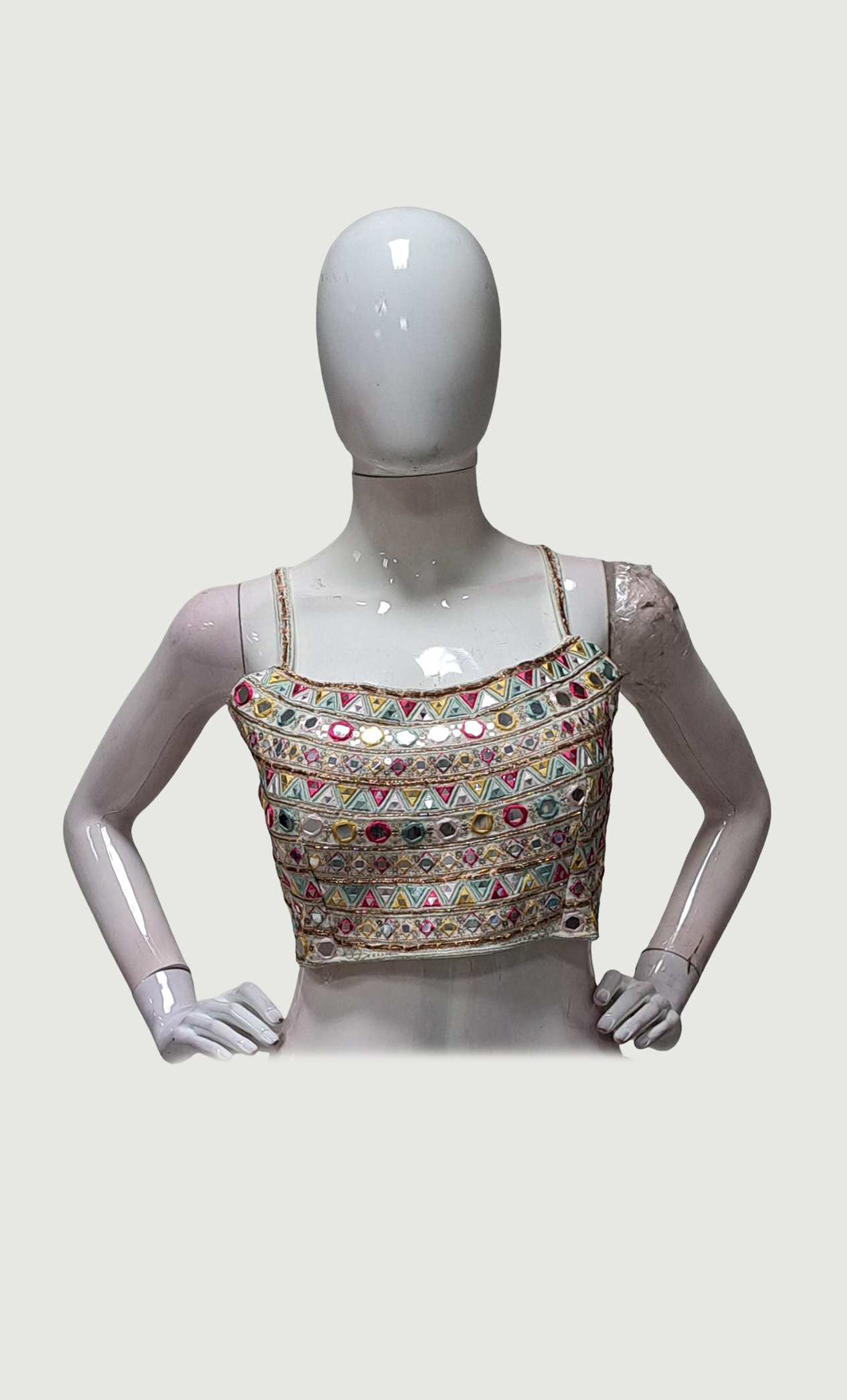 • Multi-colour cotton embroidered patterns with mirror work finish
