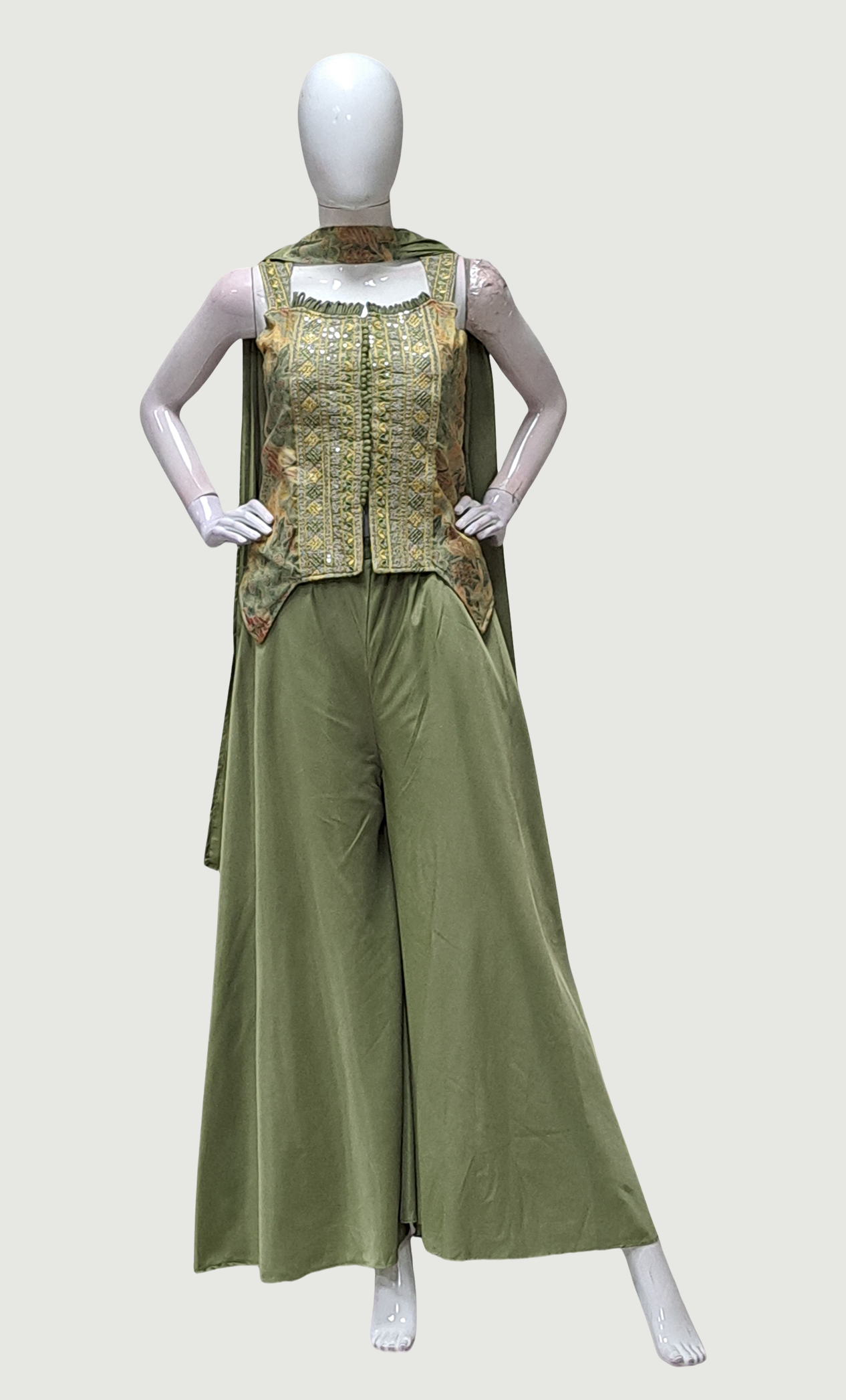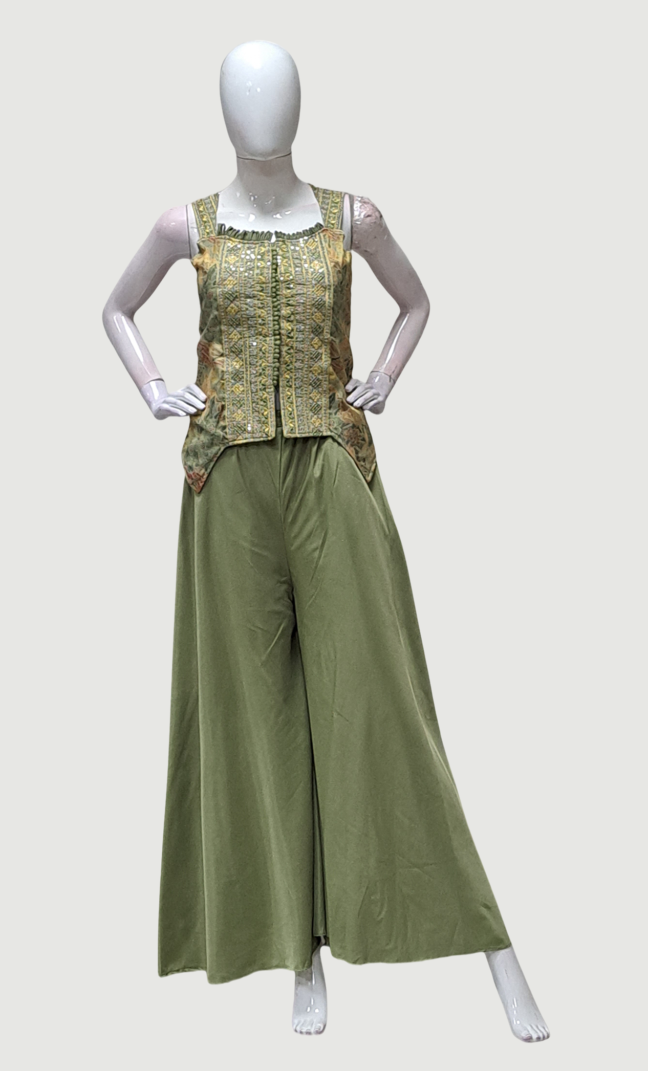 Olive Embroidered Palazzo Set