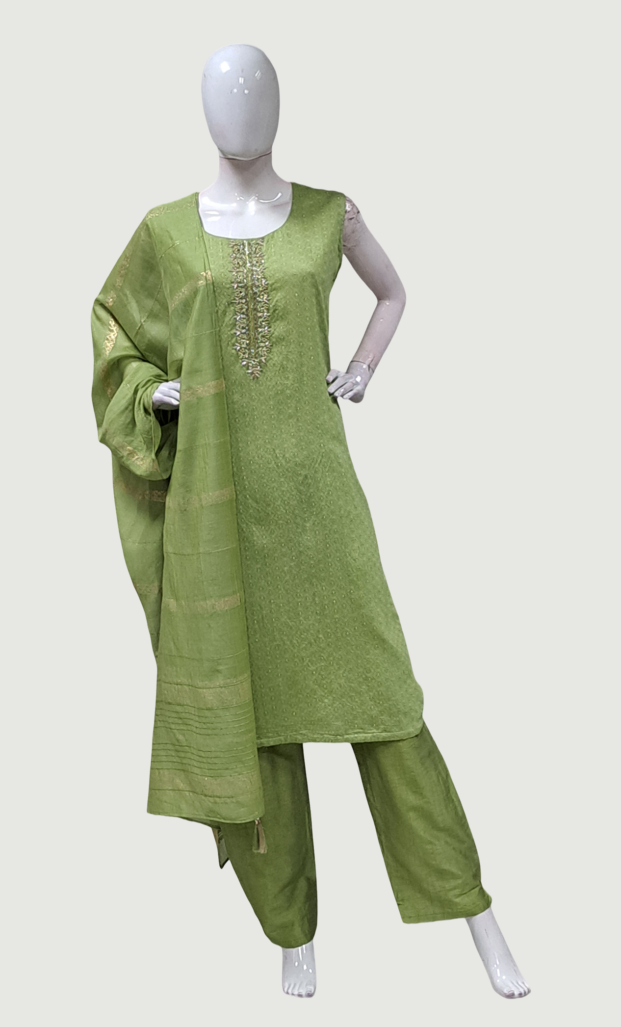 Olive Embroidered Punjabi
