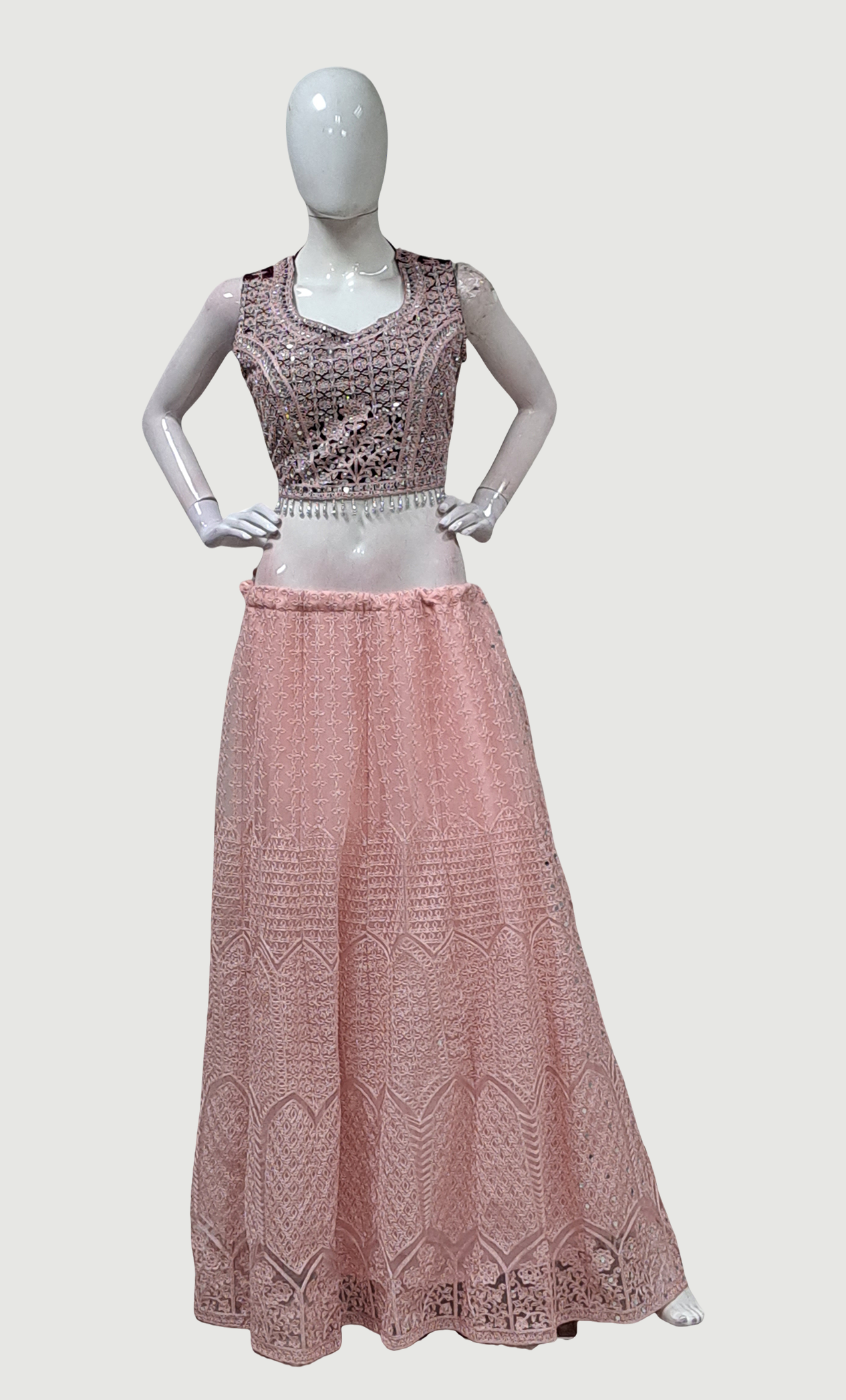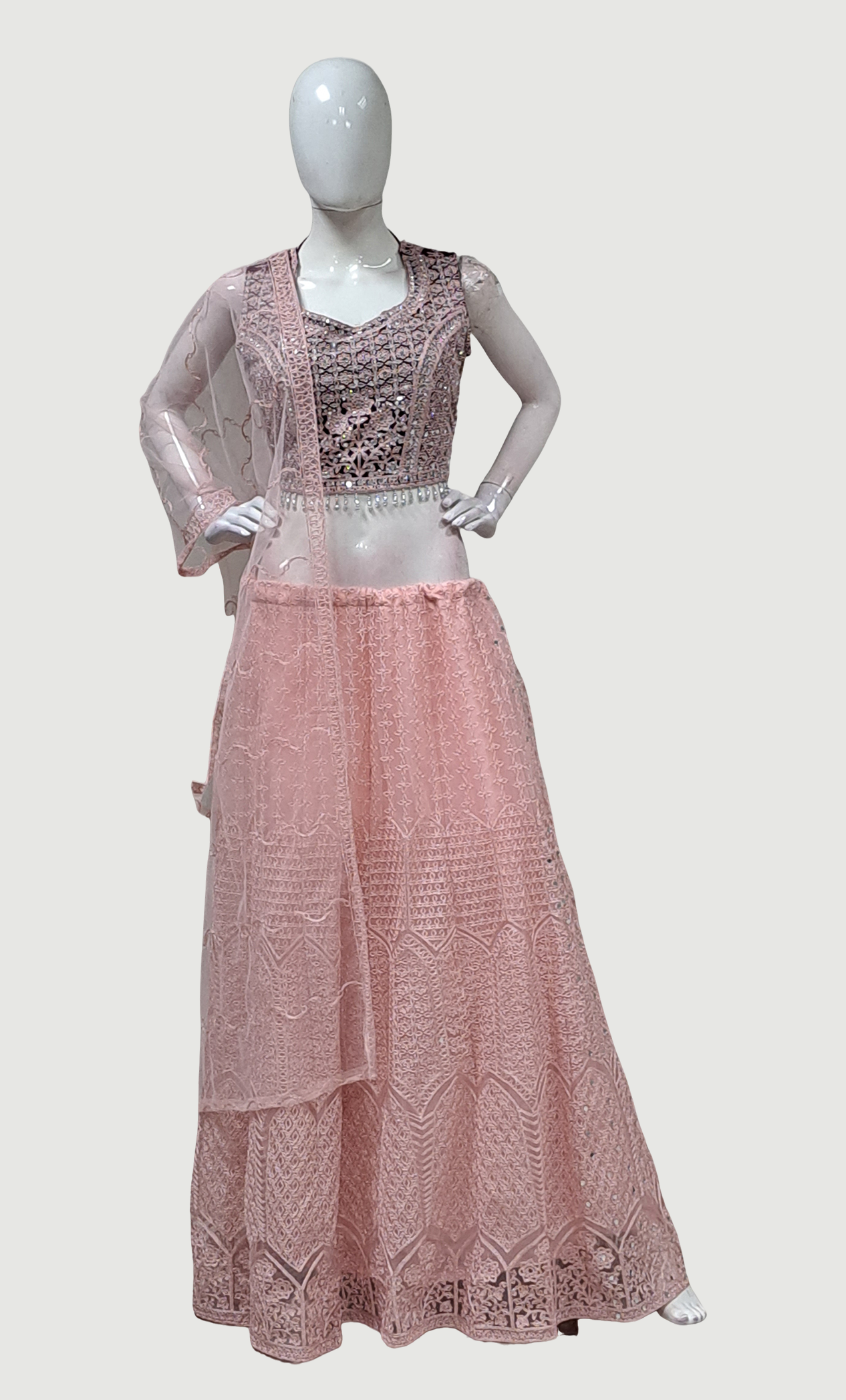 Peach Embroidered Chania Choli Set
