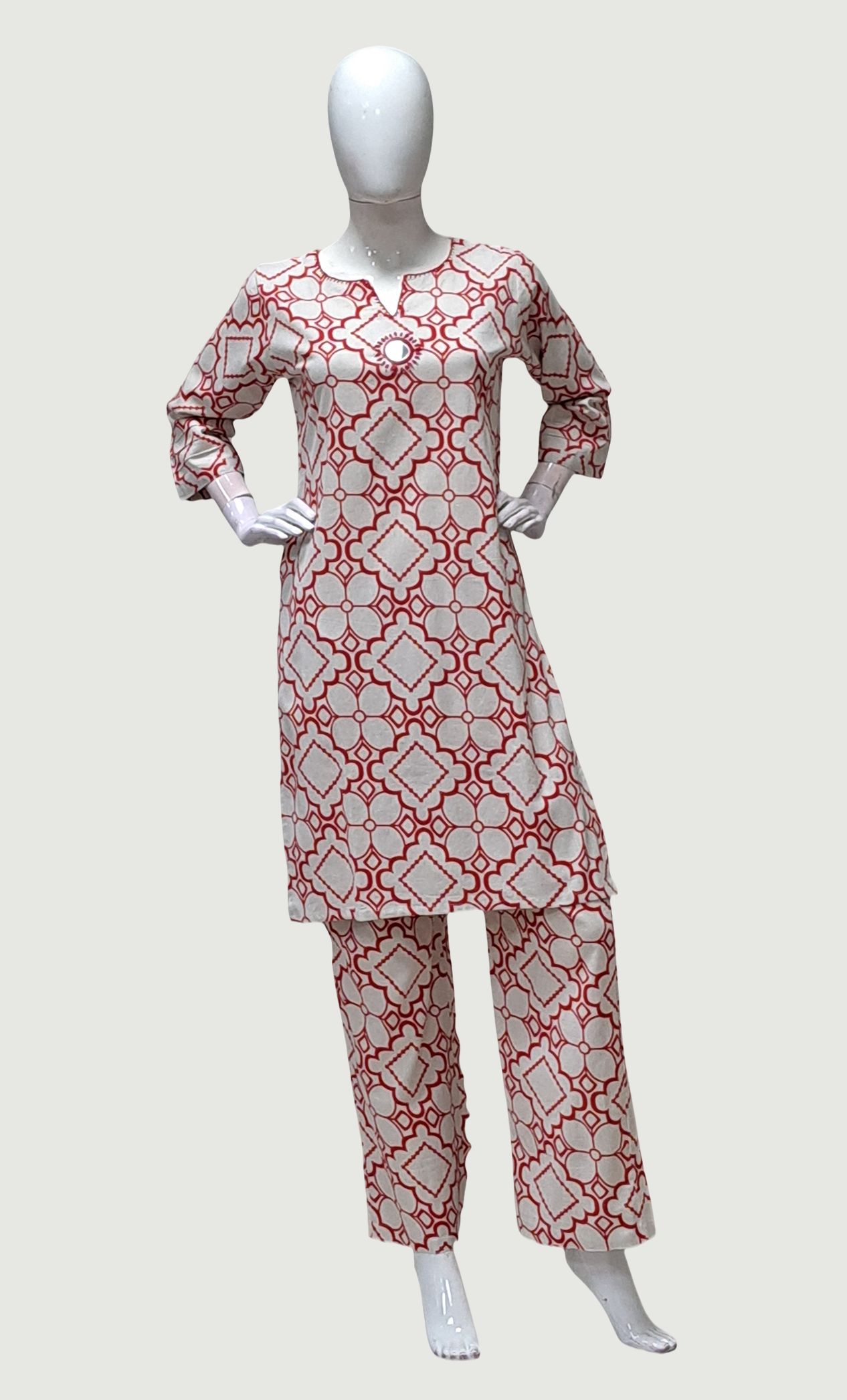 Red Printed Kurti Top & Pants