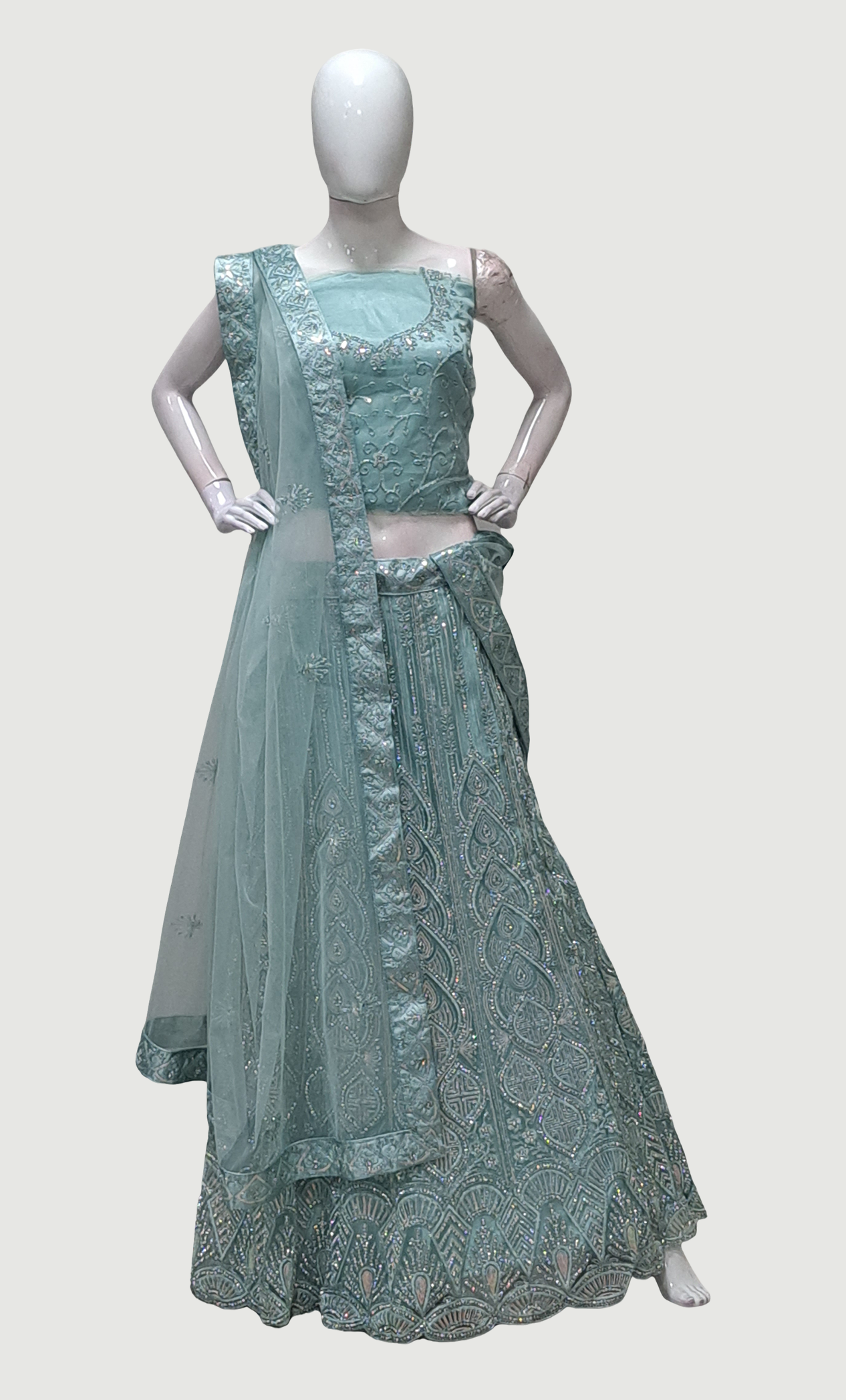 Sea Green Embroidered Lengha