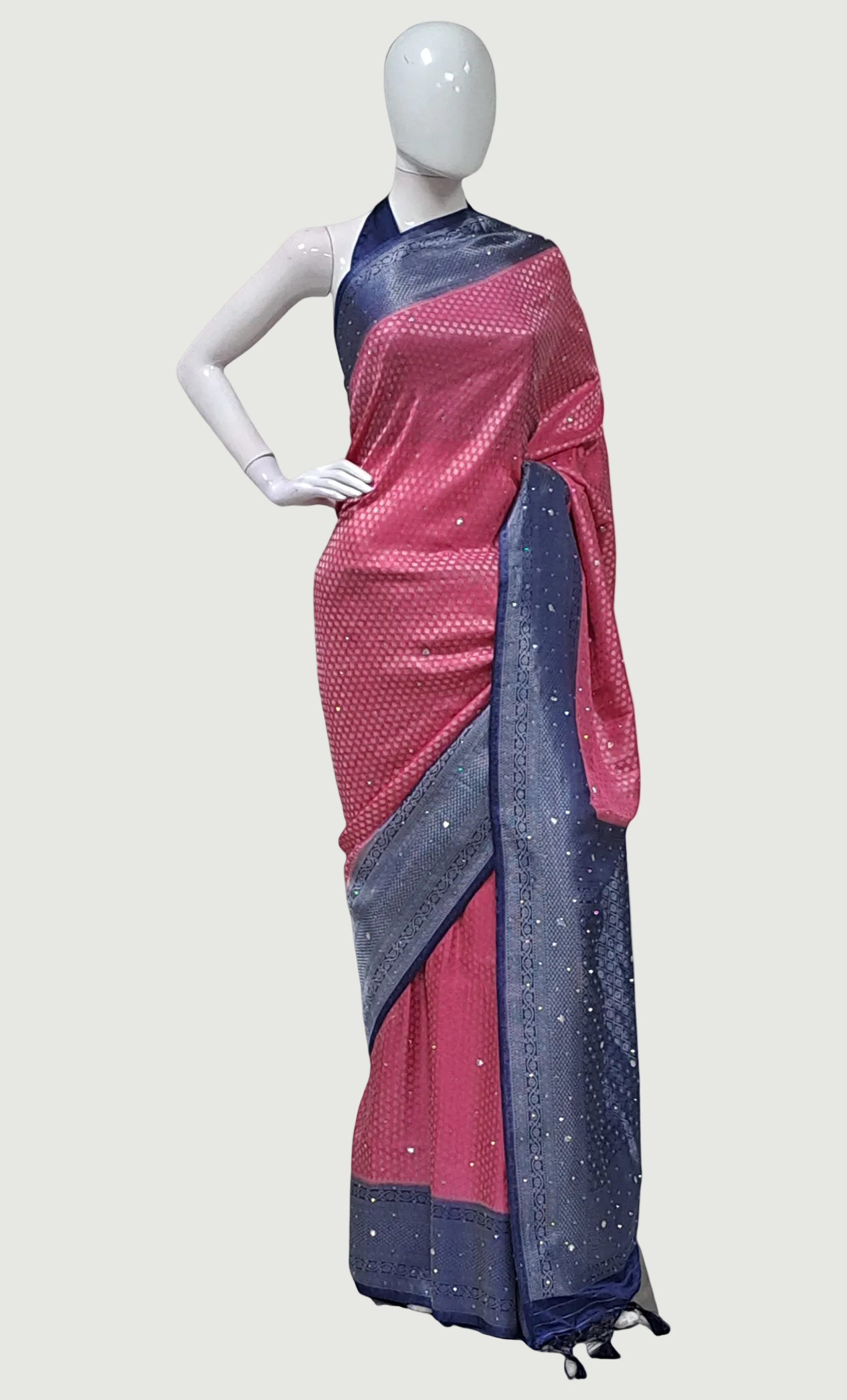• Navy with silver woven designs & embroidered stonework detail