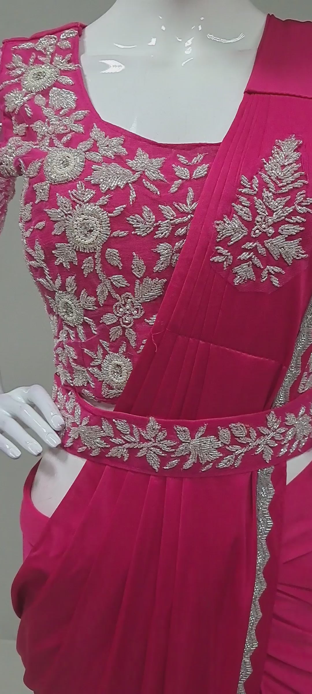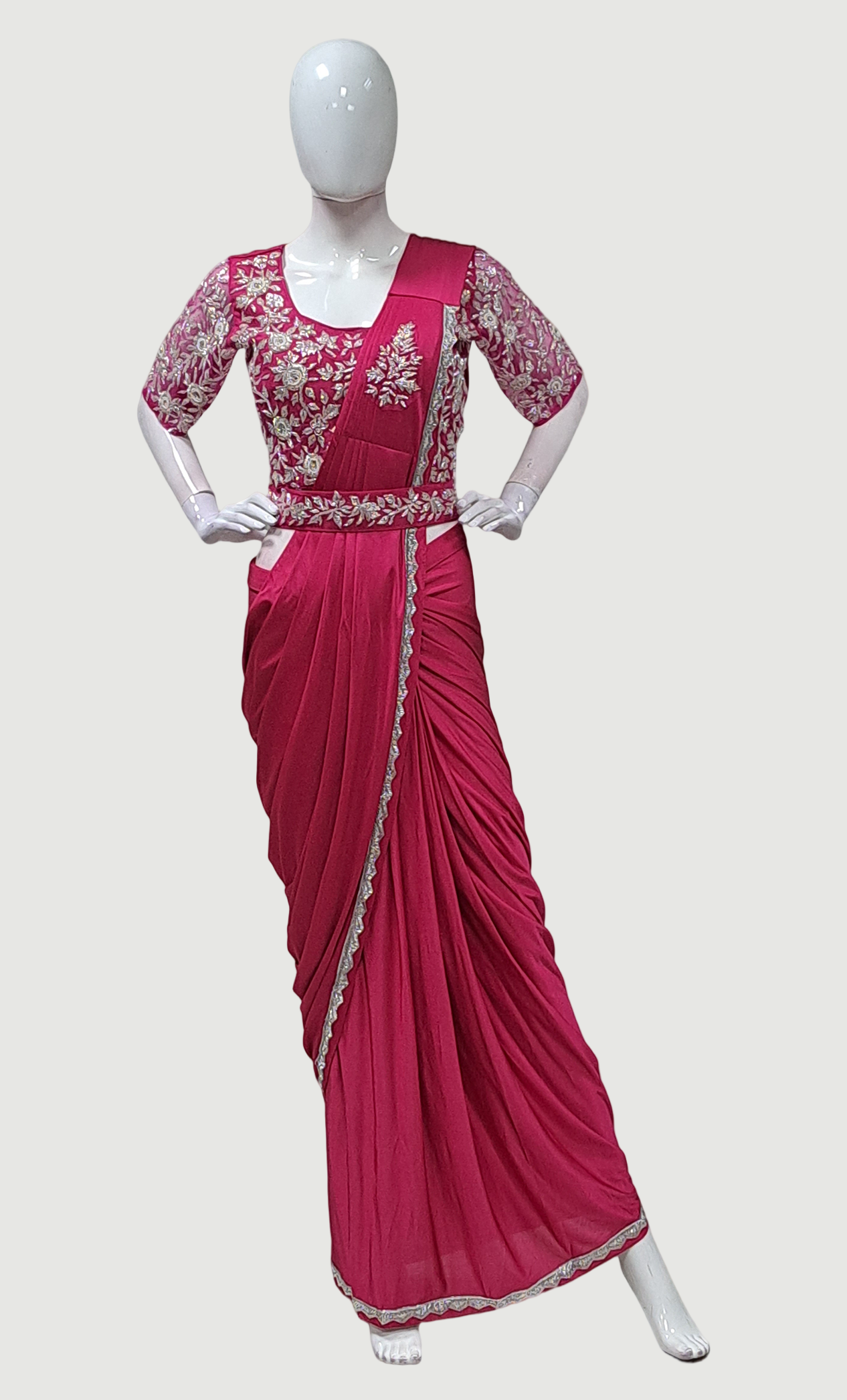 Deep Cerise Ready Sari With Ready Made Blouse