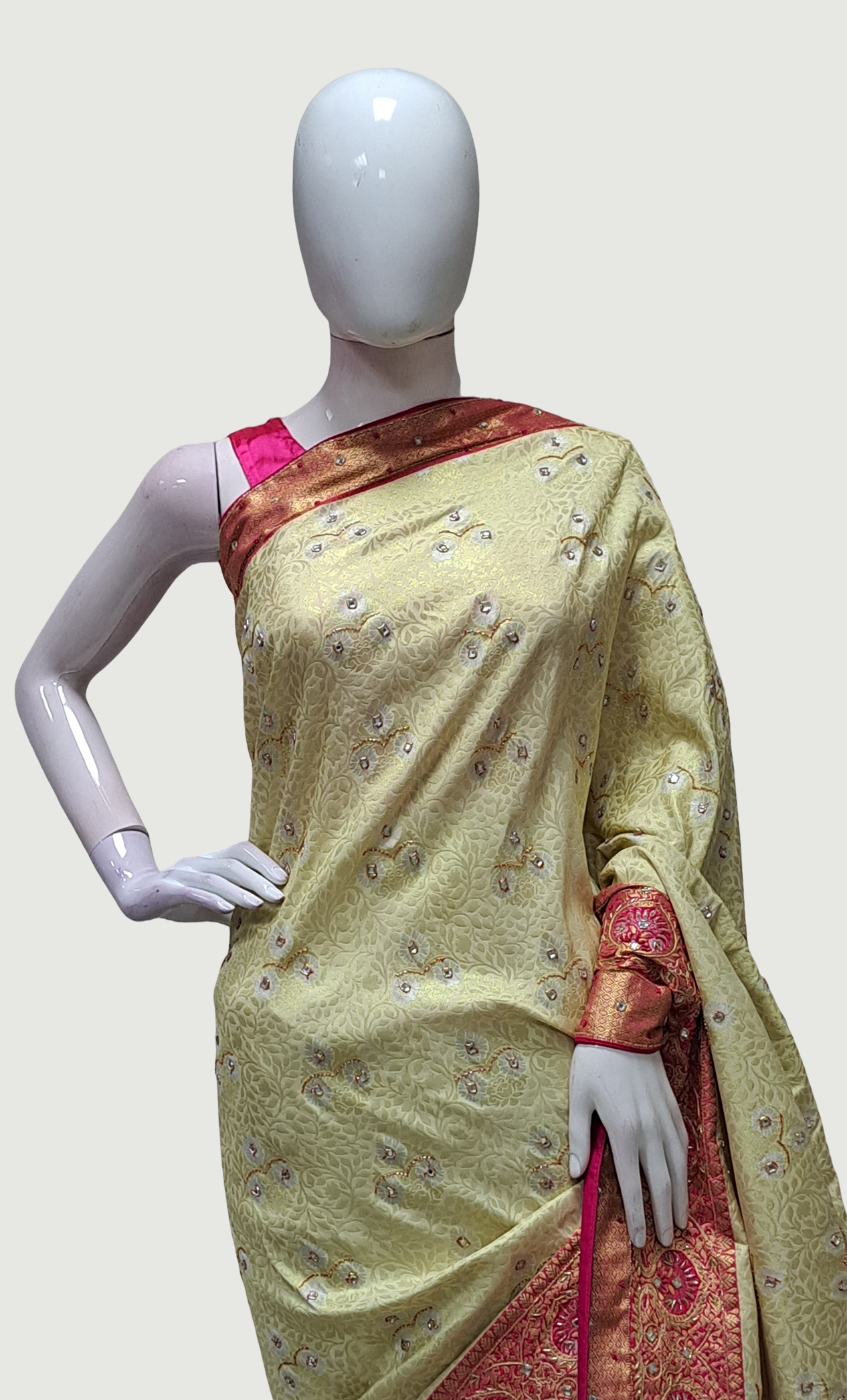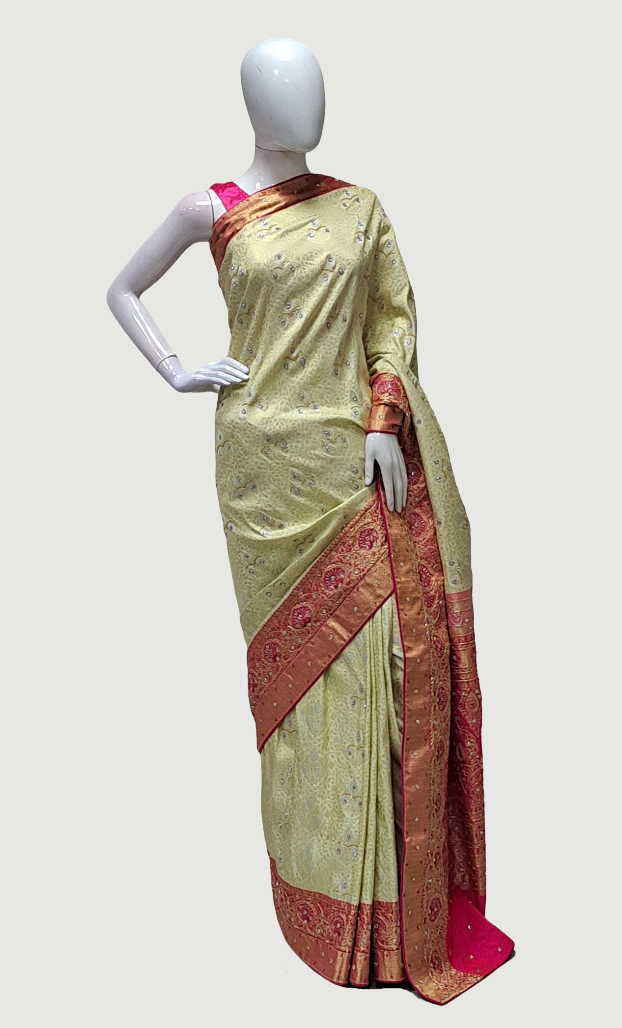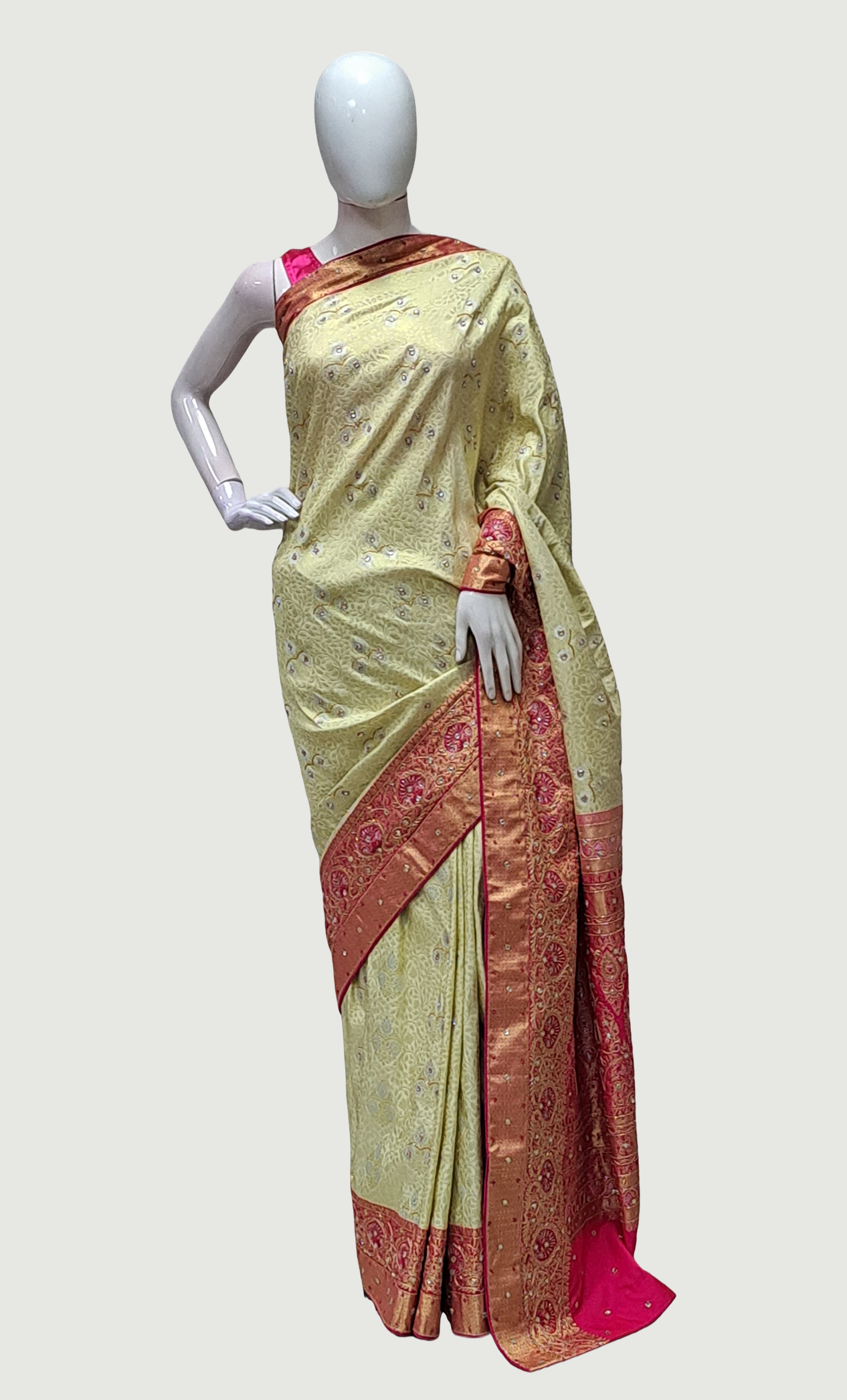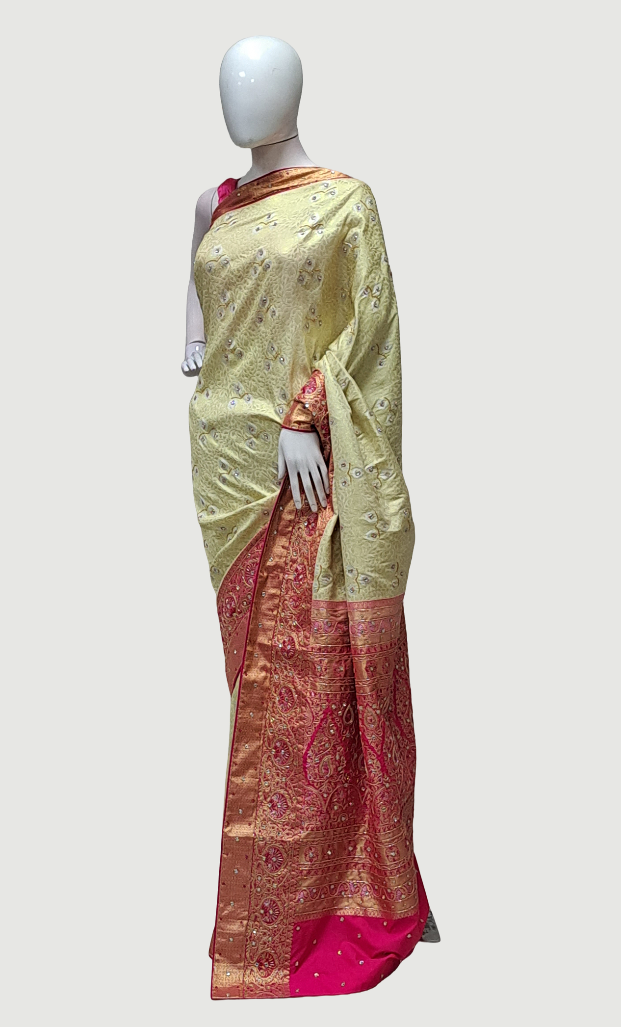 Deep Cream Embroidered Pure Silk Sari