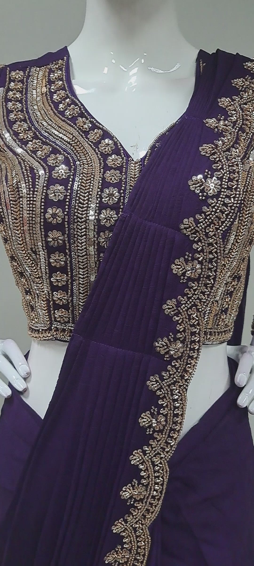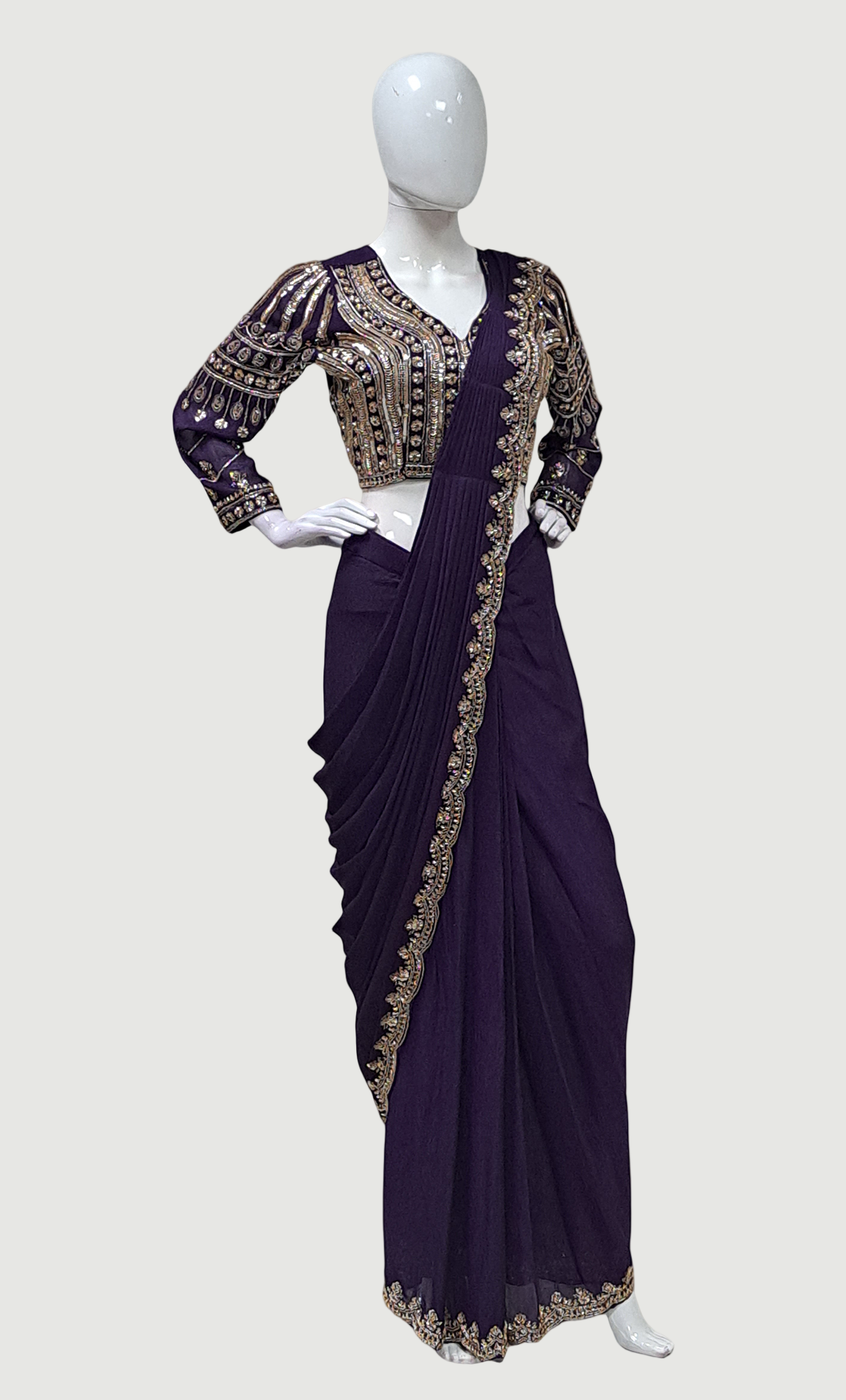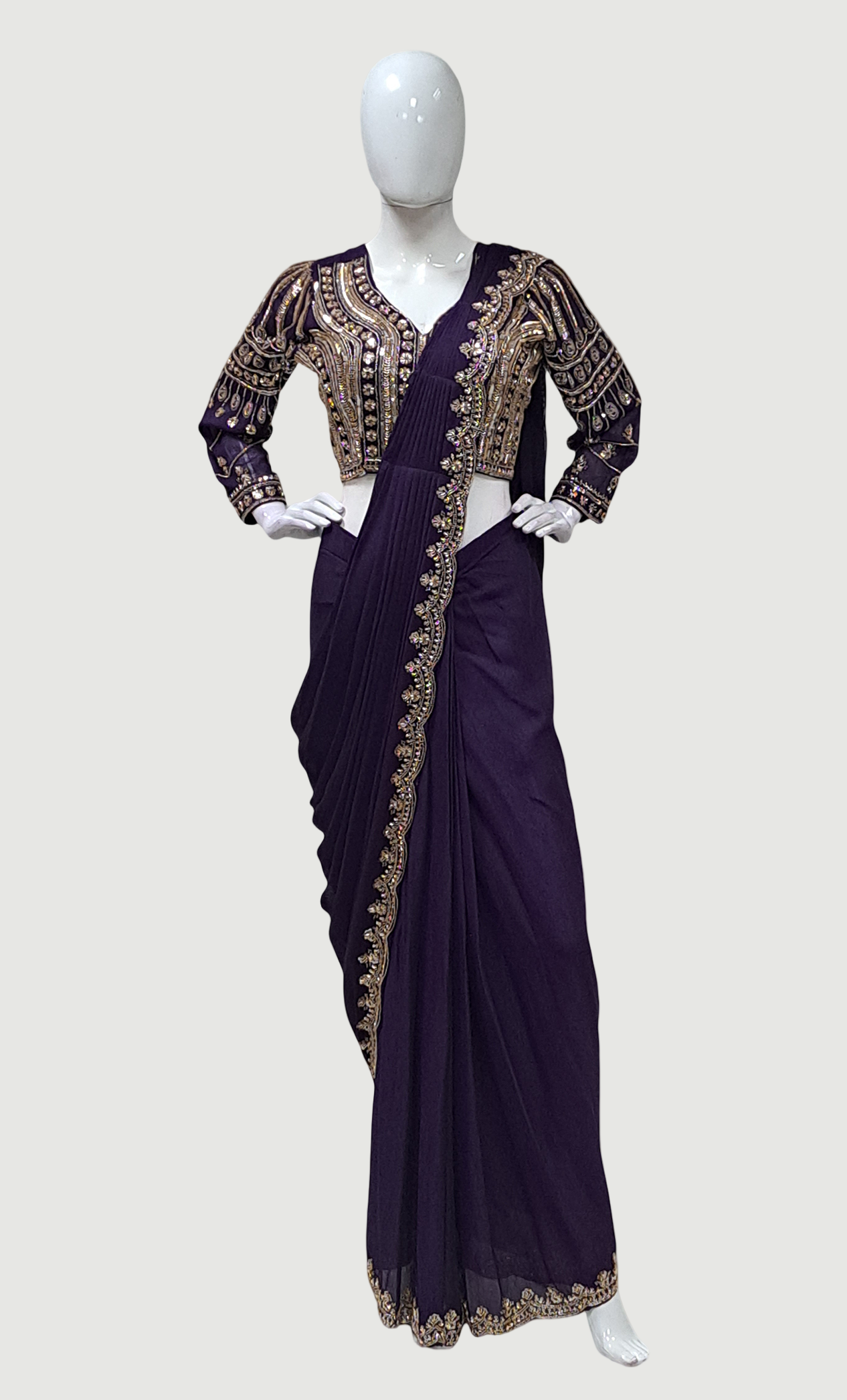 Deep Purple Ready Sari With Ready Made Blouse